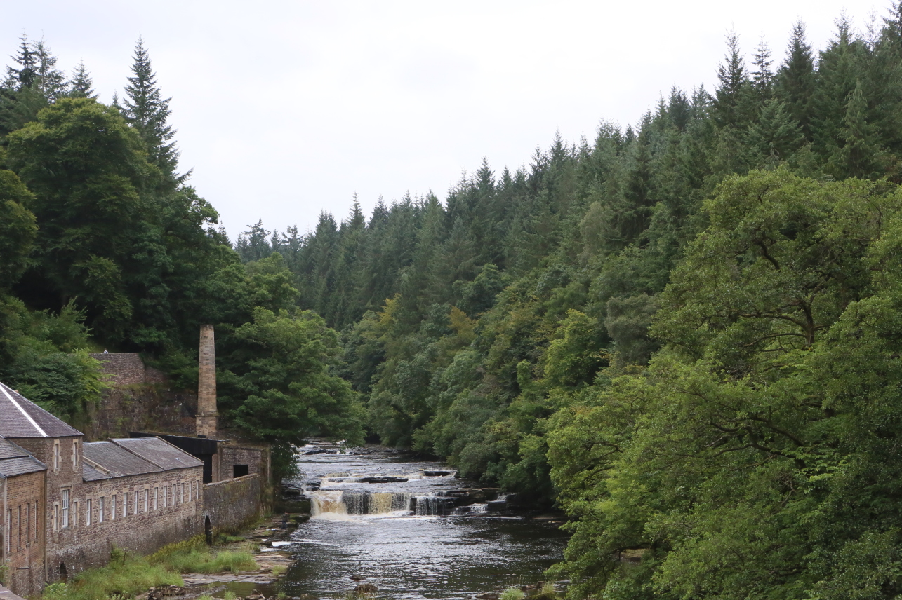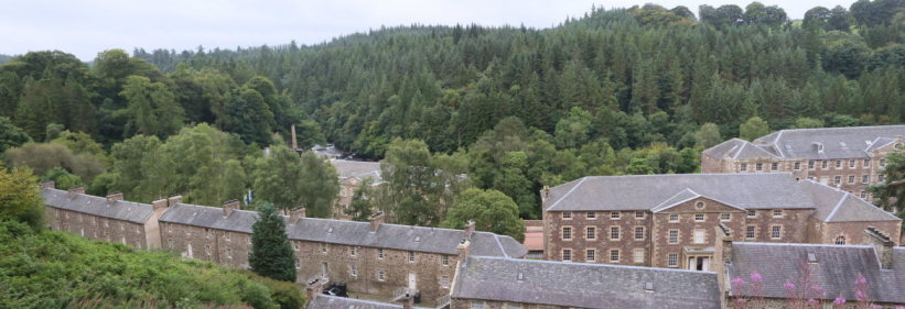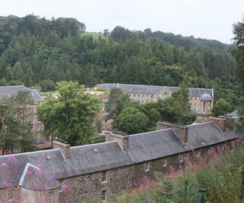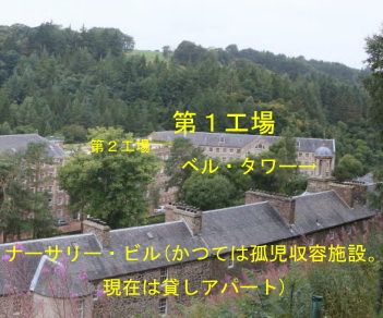 スコットランドのグラスゴーから南東へ約40km、グラスゴーからラナーク駅に行き、そこからちょっとわかりにくい標識に沿って2.5km歩いたところに、ニュー・ラナークがある。ここは、クライド川の急流が近くを流れているため、水力を動力とした紡績工場が1785年にスコットランドの資産家デビッド・デイルにより建てられ、その娘婿となったロバート・オーウェンによって経営が引き継がれ、思いやりのある労働環境と経済効率を両立する「偉大な実験」がなされたところである。2001年に世界文化遺産に登録された。