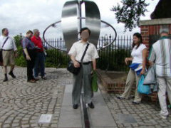 元グリニッジ天文台の案内板。東経135度近辺だけでなく0度にまで日本人は棲息。