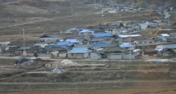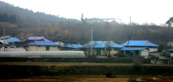 上左は慶尚道を横断したときの農村風景。上右と下は忠清南道のもので、一部で屋根の「縁取り」に赤い色が使われていた。ソウルの昌徳宮の、国王が日常の政務を行った建物である「宣政殿」は残存する青瓦の建物である。青瓦は昔は王しか使えなかった。現在の大統領府も青瓦で「青瓦台」というのは周知のことである。農村もわらぶき屋根から近代化するとき、憧れの青瓦を志向したのだろうか? ちなみに、下は高層ビルの上から撮った青瓦台と景福宮。