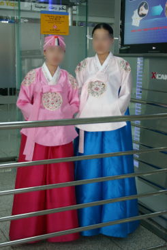 ロッテホテルのロビーで案内サービスをしていた女性と、仁川空港で案内をしていた女性たち。快く撮影に応じてくれた。顔も紹介したいくらいだが、これは了解をとっていないので残念でした。