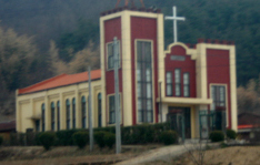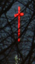 山の麓にも教会 夜は各地で教会の赤十字が光る