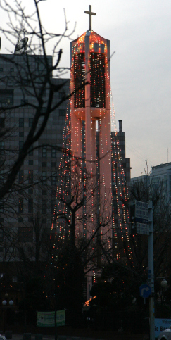韓国で感じるのは、どこでも教会が多い、それも各町内に一つくらいの割合くらいに多いということである。