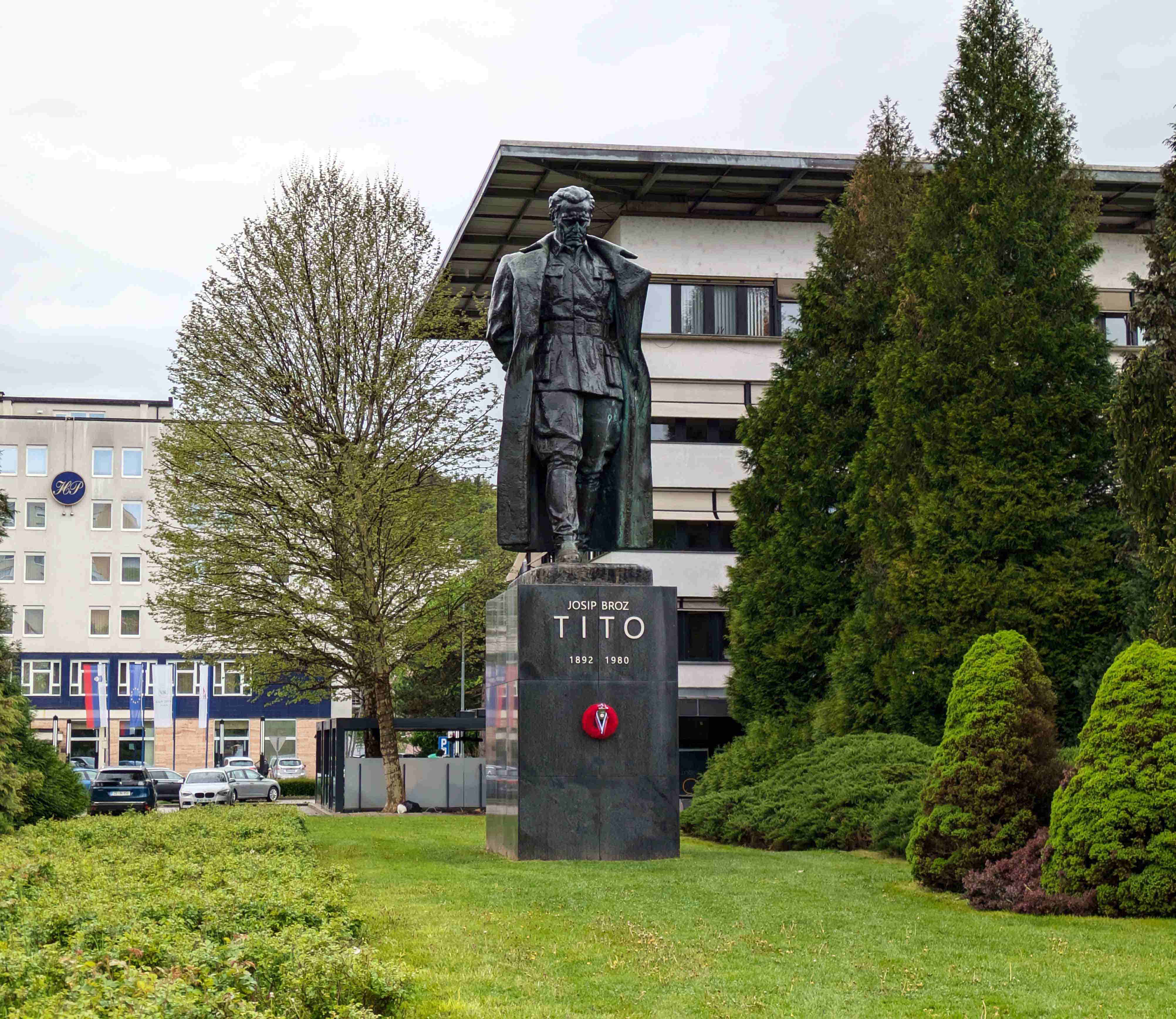 権力者にありがちな行為だが、チトーも各地に自らの像を立てさせた。ユーゴスラビアの共産党とユーゴスラビアの崩壊の中で、スロヴェニアにあった像はほとんど無くなった。調べたらヴェレニェに一つ残っていた。パルチザンの記念碑の広場の脇にある。ただし、これはもっと後の時期に立てられた。