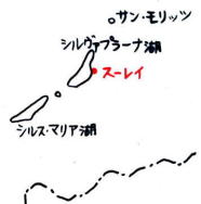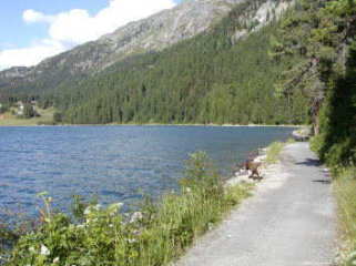 北隣のシルヴァプラーナ湖のほとりもニーチェはよく散策した。1881年の夏、彼は湖のほとりのスーレイという町の近くを散歩していたとき、大きな三角形の岩に遭遇し、その瞬間、永遠に繰り返す無意味な時間(永劫回帰)という考えが閃いたという。