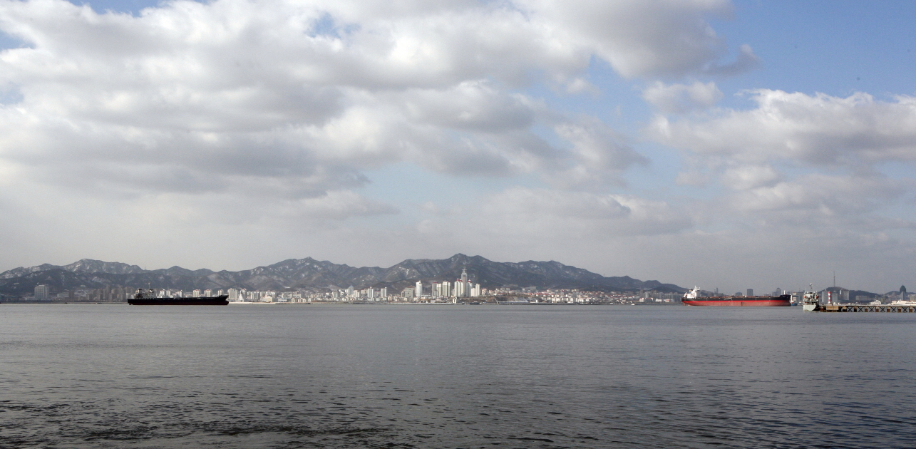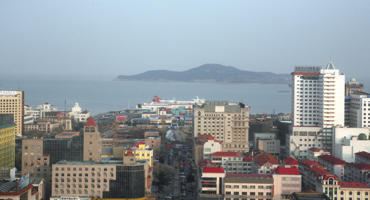 海上から威海を望む
