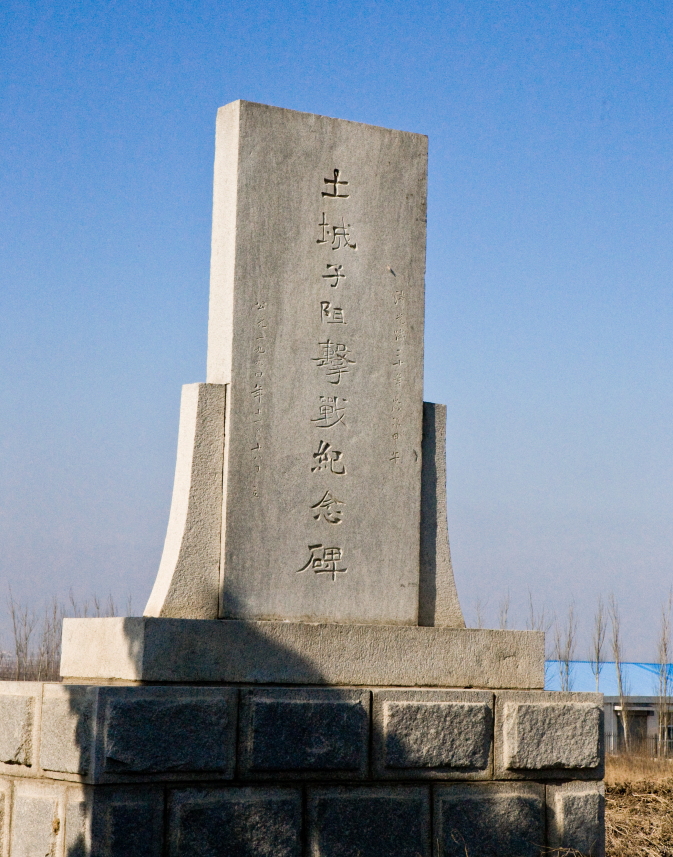 「土城子狙撃戦記念碑」は道路のすぐ脇にある