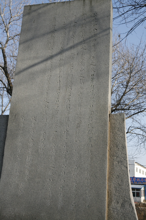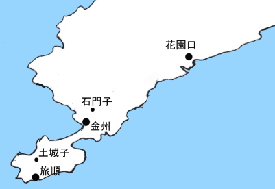 8月初めに大本営は「作戦大方針」を決定した。それは、黄海、渤海の制海権を目指し、制海権掌握なら渤海湾から陸軍主力を上陸させ、北京付近の平野で決戦するというもの。渤海の制海権が取れないが日本近海を確保している場合は、朝鮮半島の清軍を撃破し「韓国の独立を扶植する」。さらに清にすべての制海権を握られた場合は国内防備に努める、という内容であった。連合艦隊は制海権奪取、陸軍第一軍は朝鮮半島から清軍を追い出し、さらに東北地方の清軍の牽制を行うこと、陸軍第二軍は、遼東半島に上陸して、清の根拠地旅順を押さえることが当面の目標となった。戦争の推移第一軍は、朝鮮半島を北上し、9月16日には平城を占拠し、10月24日には中朝国境の鴨緑江を渡って、10月26日清国内の九連城を占拠し、10月31日には奉天へと続く道の要衝にある鳳凰城も落とした。連戦連勝の理由として、日本軍は空中で爆発し、多数の小弾をばら撒く殺傷能力の高い榴霰(りゅうさん)弾を大量に砲撃したことや、清軍は訓練不十分の新募兵が多く、さらに500人中に銃を所持する者が350人で、中には「矛戟(ぼうげき)類」(矛やその横に垂直に刃をつけた武器)を持った者もいたためで、戦闘意欲が低かったことがあったという。ただし、厳冬の対策が不十分だったため、多くの兵士が凍傷などで病死した。9月17日午後、黄海で、連合艦隊など12艦は清国北洋艦隊14艦と交戦し、5艦を撃沈した。清は衝角(船首の水面下に付けた尖った武器)による衝突撃沈の戦法をとったが、日本は当時世界最速の4艦艇をもっての機動力と、甲板を燃やしたり人員を殺傷する火薬を砲撃する高速中径砲により勝利した。ただし、旗艦も被弾して指揮不能になった。北洋艦隊は根拠地威海の劉公島へ敗走した。黄海の制海権を手にした日本は、11月6日、遼東半島の花園口などから上陸し、金州城を占拠した後、21日旅順港を陥落させた。この間、中国側では、金州北の「石門子」(せきもんし)と、旅順北の「土城子」(どじょうし)で日本軍と激戦をした、ということで彼らの奮戦を称える記念碑が建てられている。![]()