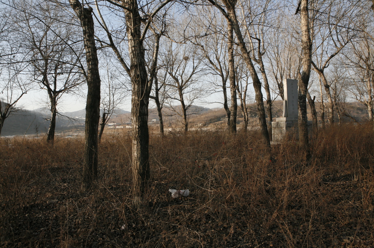 「石門子狙撃戦記念碑」。私が行ったのは12月。当時の11月の戦争時もこのような風景の中だったのだろうか?