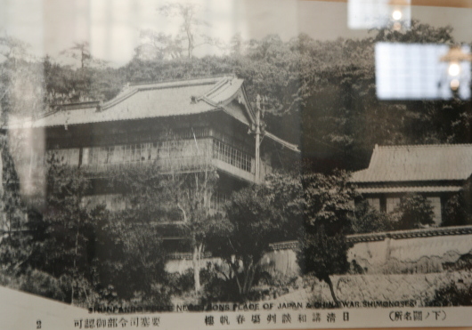 講和会談の行われた春帆楼(しゅんぱんろう)の元の写真(左)と、現在の建物(右)。この向かって右脇に「日清講和記念館」があり、元の会談の場が移設再現されている