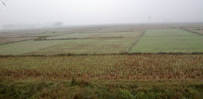 もし、ここが城だったらまわりはどのようだったのだろうか。今はのどかな田畑が広がっているだけ。