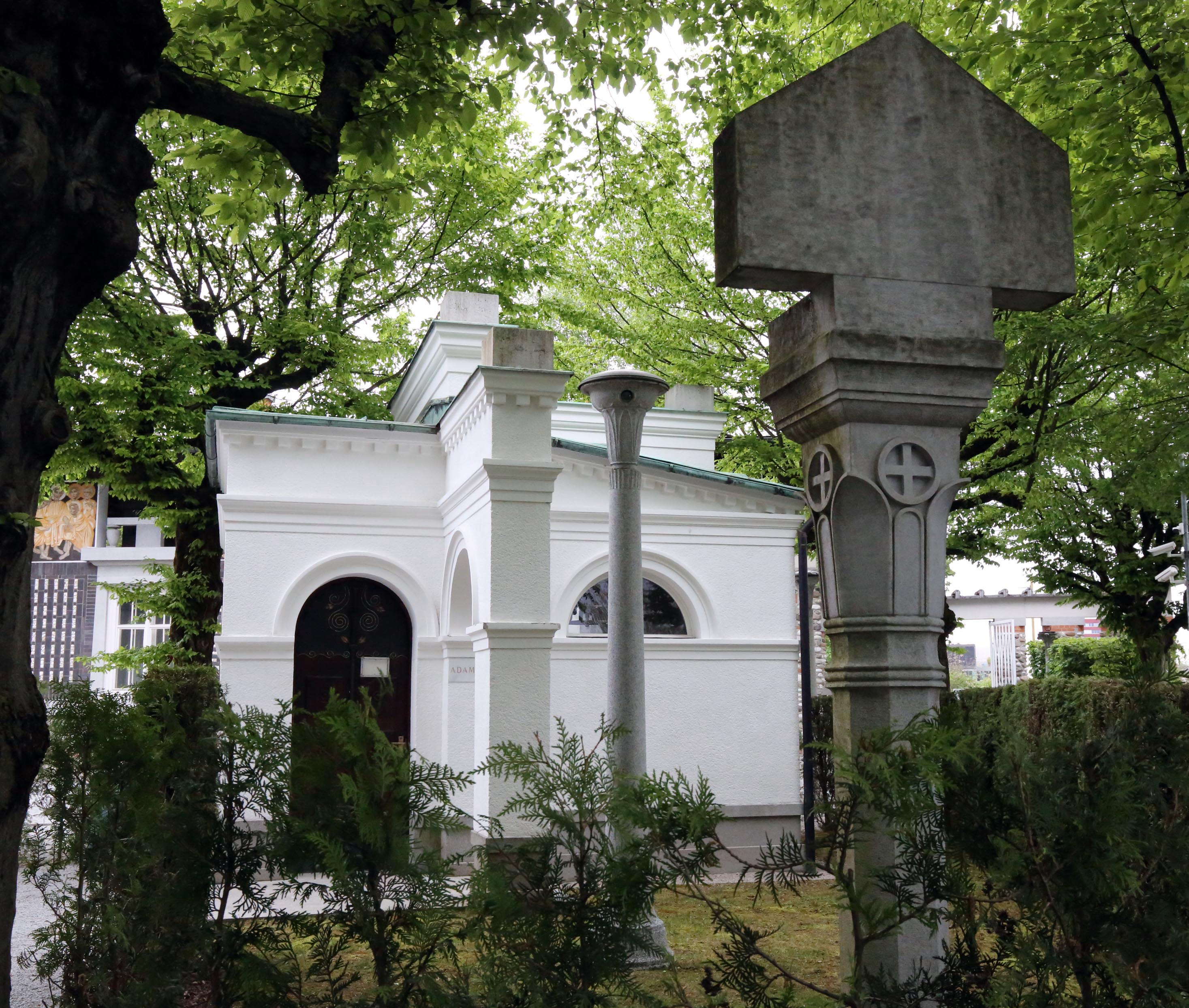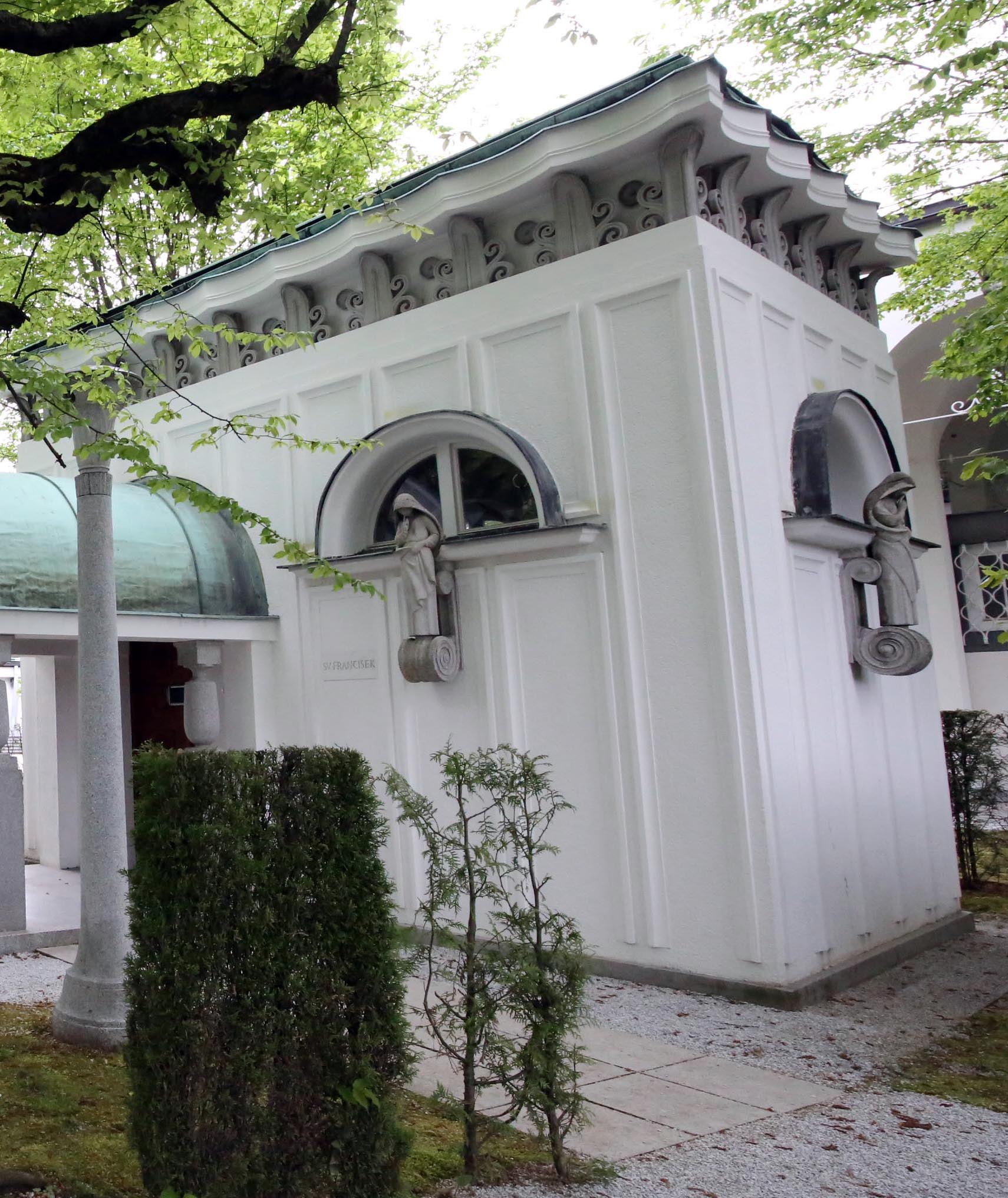 プロピュライアとこの祈禱所を結ぶ、「中央軸線左側、北東方向には四つの安息礼拝堂が 配置されている。八角形の聖ペテロ礼拝堂、ギリシャ教会を想起させる聖ヤコブと 聖母マリア礼拝堂、ギリシャ神殿または宝物庫を模した聖ヨハネ礼拝堂が敷地の周囲に沿って並ぶ。⑤」「建築家は安息の礼拝堂とその他の施設を配置した。 これらは故人への最後の別れに必要な施設である。⑥」
