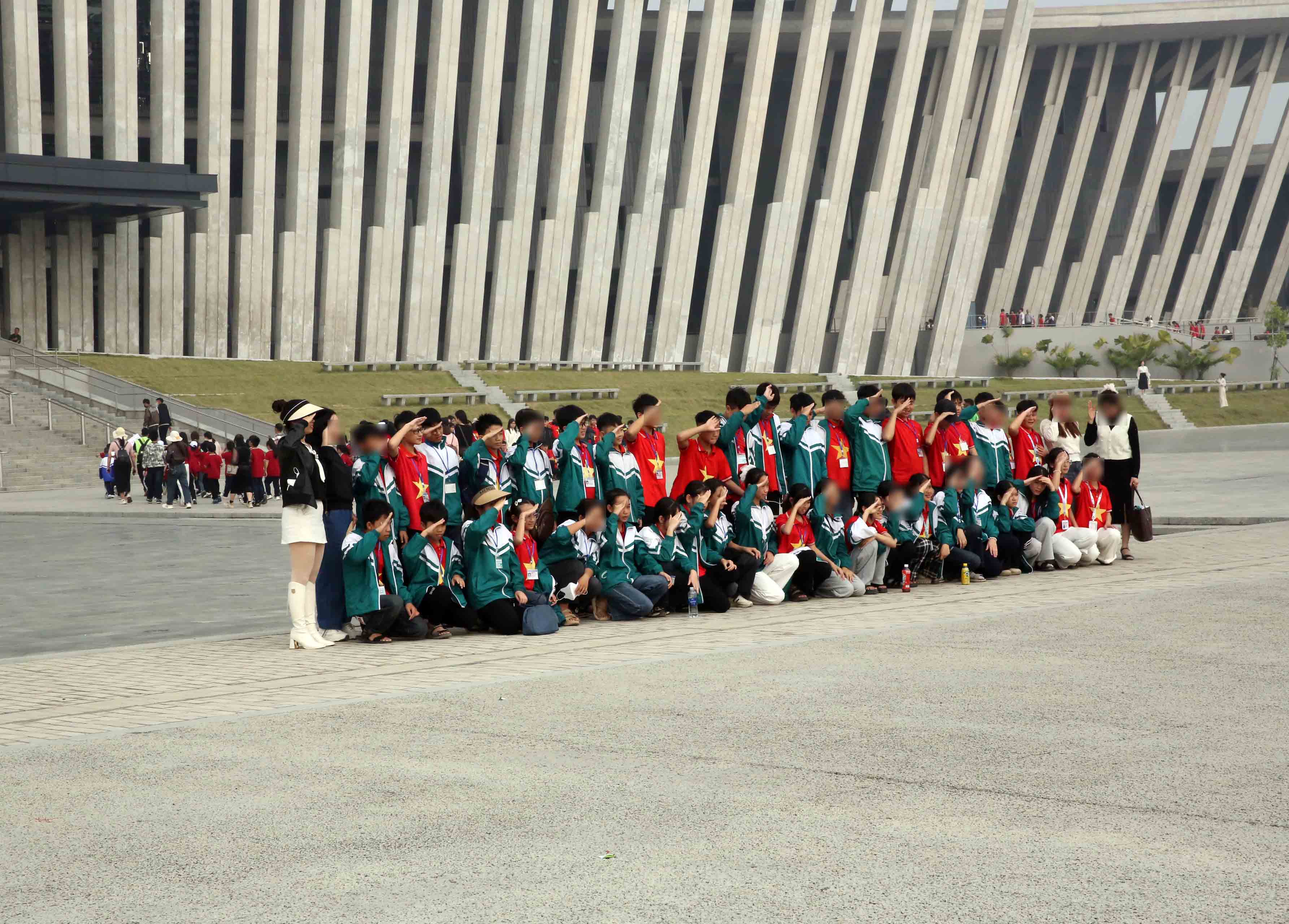 ハノイの新装軍事歴史博物館前にて。校外学習の一環であろう。