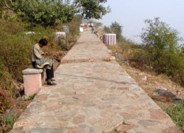 霊鷲山と、ゴータマの説法を聞きに行きたくて作った「ビンビサーラ王の道」。現在は物乞いが少なくない。写真の人は違います。