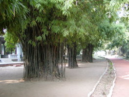 竹林精舎跡の近くに植えられている竹林。右が元々の竹林精舎跡。