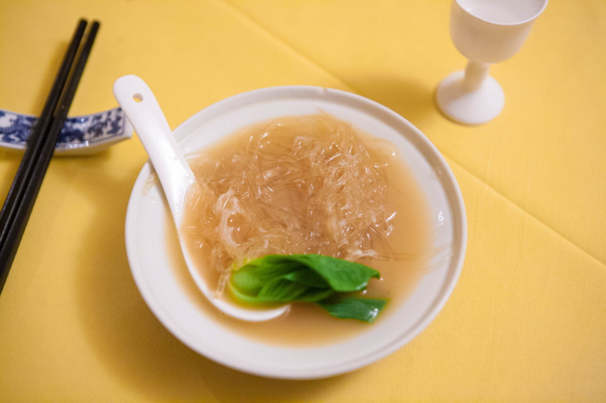 ここから「熱菜」(メインコース)。まずふかひれスープ。
