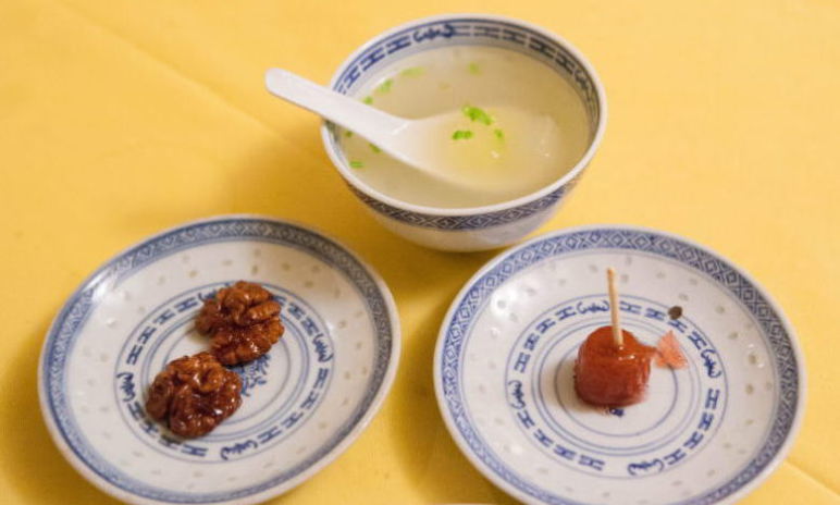 今思うに全体的にあっさりしていて、日本人には抵抗感のある香料などの使用があまり感じられず、皆食べやすく、デザートもいれて22品目も食べられた。満漢全席の品数ほどではなかったが、けっこうたくさん出て満足感をもって帰ったことを思い出した。ここで満州族の文化の一端である宮廷の洗練された料理のいくつかを紹介できて良かった。