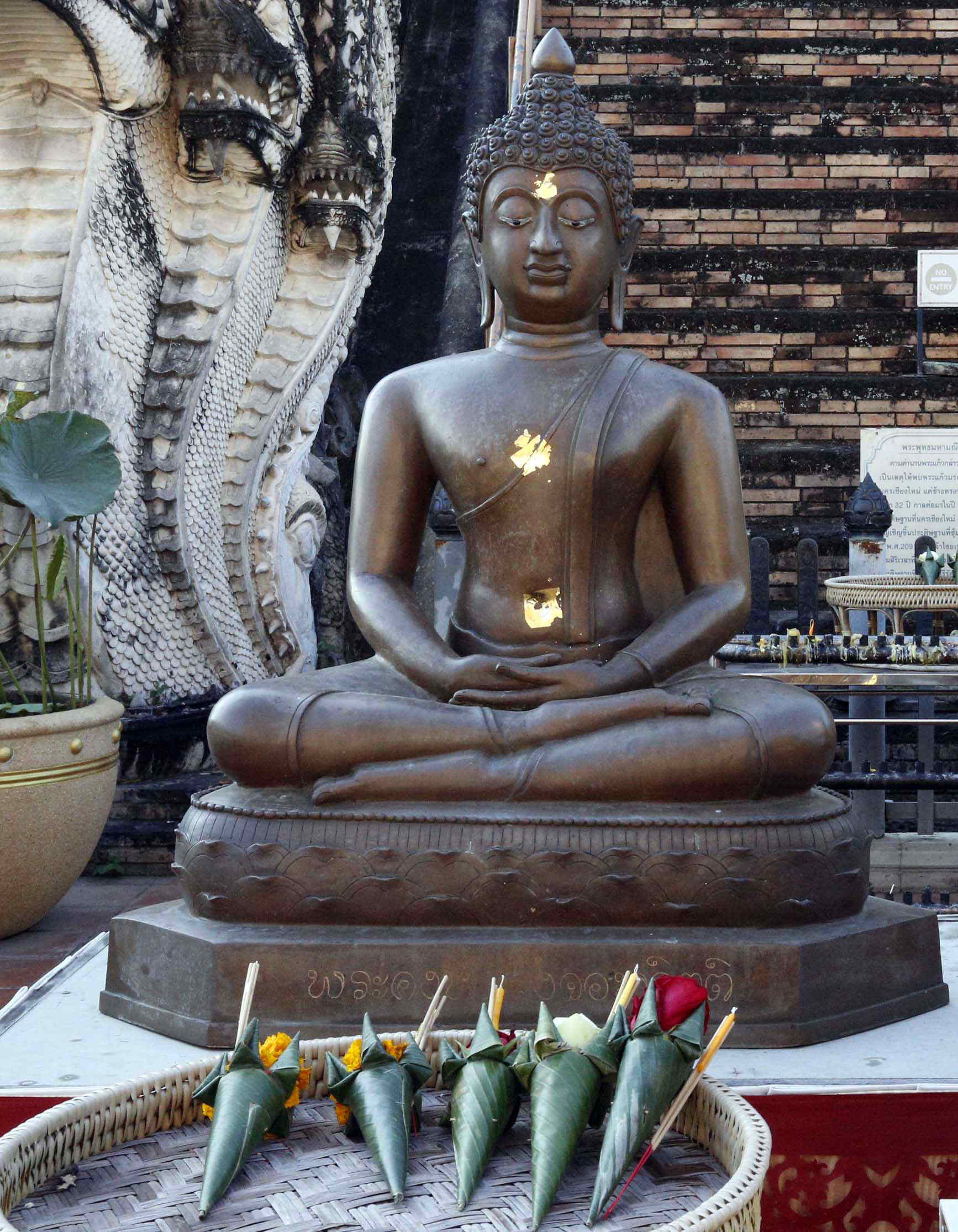 なぜ「徳を積む」のに熱心なのでしょうか? タイの現地ガイドに聞いた彼らの宗教観から来ていました。タイ人は来世の生まれ変わりを信じているそうです。だから王族以外は、遺骨は海や山に散骨するそうで、タイに普通の人のお墓は無いそうです(当然墓参りはしませんが、家族親族で故人を写真などで偲びつつ集まることはあるそうです)。これはインドのヒンドゥー教徒と同じです、というよりこの輪廻転生(りんねてんしょう。肉体は死んでも「魂」は不滅で、肉体の生まれ変わりを繰り返すこと)の考えは元はと言えば、ヒンドゥー教の母体ともいうべき古代のバラモン教の考えから来ています。この輪廻転生は現世の業(ごう。行いの良し悪し)によって決まるとされます。良いことをしていれば(タンブンしていれば)来世はもっとお金持ちになれるとか、イケメンや美人になれるとか、天国に生まれるとか、です。悪いことをしていれば動物に生まれ変わるとか、地獄に行くとか。でも天国で神に生まれ変わっても、寿命が2,000から3,000年くらいで、また次の生まれ変わりに気を使わなければならないのです。これを「輪廻転生の苦しみ」といいます。お釈迦様、ゴータマ・シッダールタは根本的にこの輪廻転生の苦しみをどうやったら乗り越えられるか悩み、瞑想してその解決方法を悟りました。これは魂が輪廻転生の苦しみから解放されるブッダとなることでした。そのためには苦しみが続く現実をありのまま認め正しく見て考えたりする八正道(はっしょうどう。8つの正しい実践)をし、厳しい戒律を守った生活を続けることなどで、現世や来世の欲望を捨てられる、輪廻転生から解放される、と教えました。すなわち、これが仏門に入る人の根本目標です。お釈迦様のレベルの悟りには到達できないけどせめてその近くの悟りまでには行き、魂が輪廻転生していくことから脱したい、これが僧となる人の根本目標であり、方法です。他方、僧になれず、厳しい戒律を守れない一般の人々は、「せめて来世は」とより幸福な来世を願い、そのために「徳を積む」ことに励む訳です。全くの私論、いや暴論かもしれませんが、