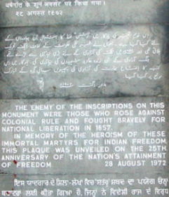 デリーの北の公園に「大反乱」記念碑がある。これは、元は1857年のいわゆる「セポイの反乱」で倒れたイギリス人やその協力者のインド人を追悼した、イギリスの立てた記念碑だった。しかし、インド独立25周年に、インドの自由のためにイギリスと戦ったインドの人々を記念するものへと変えられた。碑文の中のイギリスの「敵」は、「自由のために戦った殉教者」へと変わった。