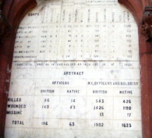 左はイギリス人や協力したインド人の犠牲者数を、右は戦いの経過を刻んだもの。