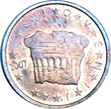 最後に、主にメジャ川沿岸地方を含むコロシュカ地方(下の地図のオレンジ色の部分部分)である。ここは、かつて7世紀に定住したスロヴェニア語を話す人々が、今のオーストリアのクラーゲンフルト近郊を中心とする「カランタニア」、ドイツ語で「ケルンテルン」という公国の地域のごく一部である。これは13~14世紀までにハプスブルク家の神聖ローマ帝国の一部となるが、支配者の公はスロヴェニア農民たちに1414年まで次のような儀式を行った。「農民たちが見まもるなか、・・・カランタニアの中心に置かれた古代ローマ時代の石柱の一部である『公の石』の上で即位した。公は即位後、『石の玉座』に腰かけて、公平な統治者で裁判官であることを約束しなければならなかった。」(『スロヴェニアを知るための60章』明石書店の「中世のスロヴェニア」ペテル・ヴォドピヴェツ著 柴宜弘訳p45~46より)この「公の石」はクラーゲンフルト市のケルンテン州庁舎「紋章の間」にあり、また「石の玉座」は、そのクラーゲンフルトに近いマリア・ザール市郊外のS37道路の脇にガラスケースと金属柵に囲まれてあり、Google Mapsで「Duke's Chair」で検索すると場所が分る。スロヴェニア人は、これを自分たちの伝統として、誇りをもっていて、2セント(0.2ユーロ)コインに「公の石」の図柄を使っている。また、コロシュカ地方ではなく先述のカルニオラ地方であるが、そのコチェーヴィエの郷土博物館でも、スロベニアの伝統として「公の石」のレプリカが展示されていた。