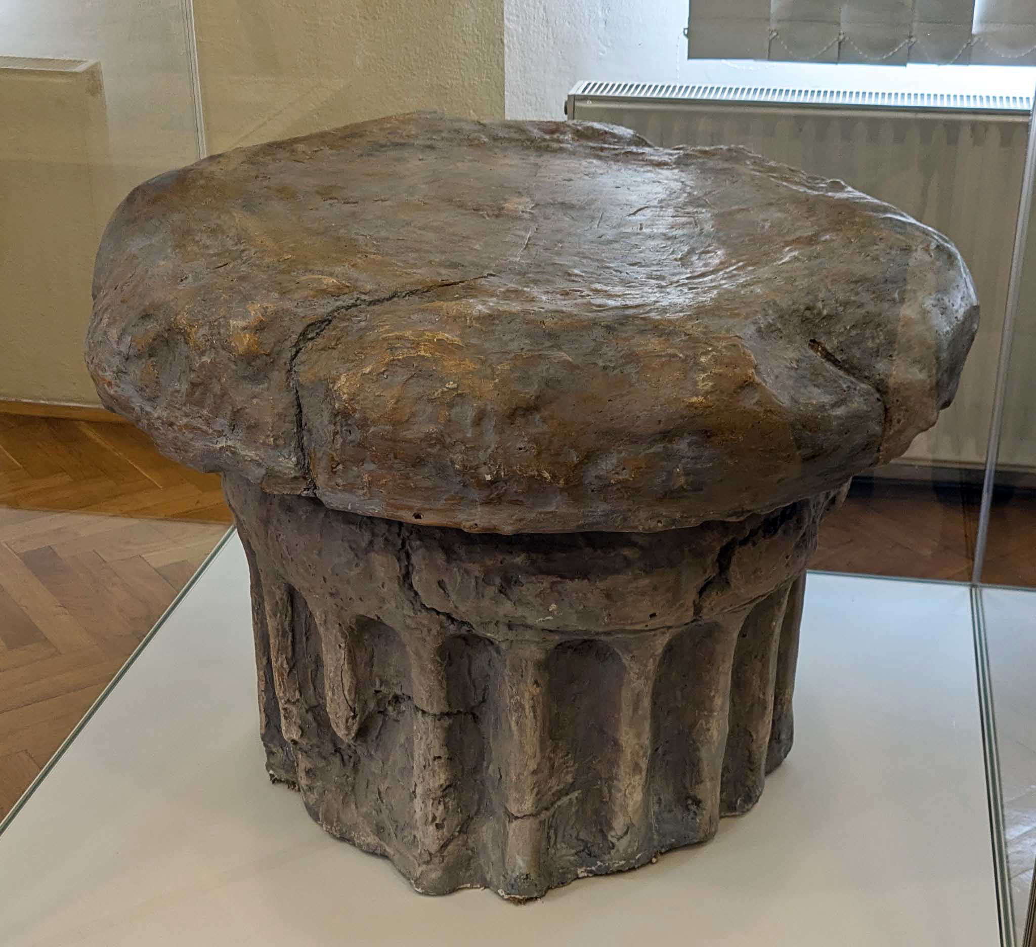 (左)スロベニア20セント(0.2ユーロ)コイン (右)コチェーヴィエの郷土博物館の「公の石」のレプリカの展示