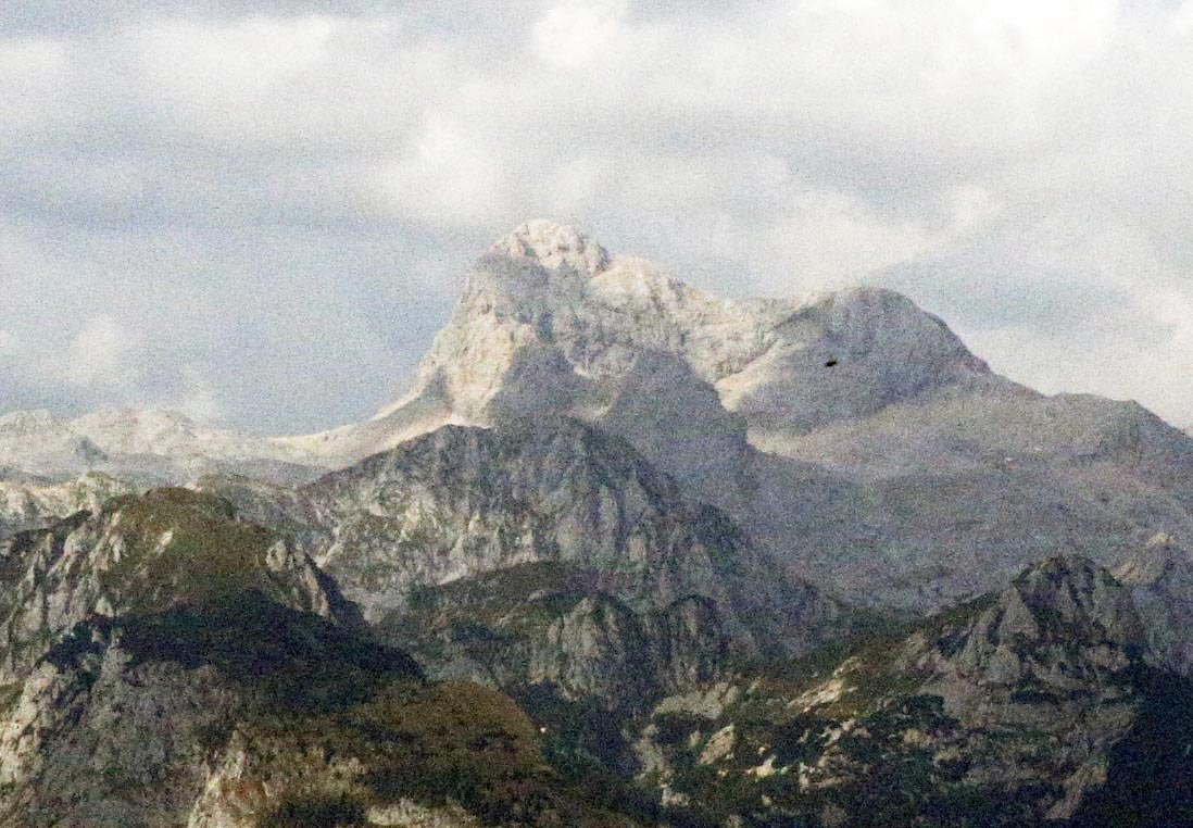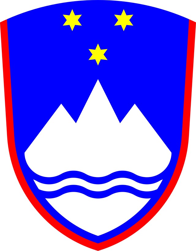 カルニオラ公国の旗。トリグラウ山。右の現スロヴェニアの地図中の●がトリグラウ山、●がリュブリャナ。
