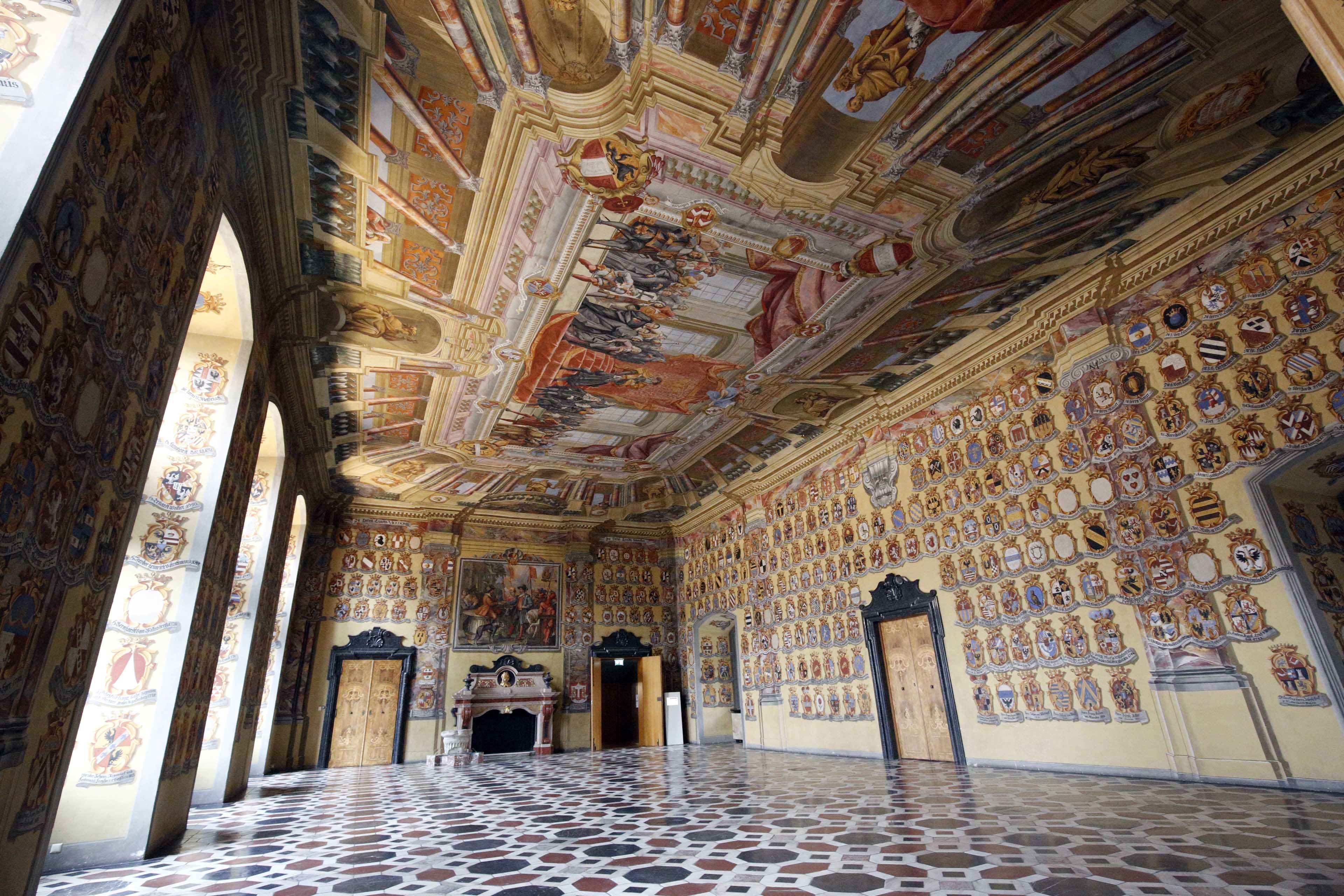 「王の石」のあるオーストリアのケルンテルン州庁舎とその「紋章の間」