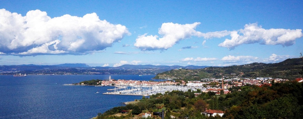 さて、国章のトリグラウ山の下側に二本の波線が入るが、これは海と川をそれぞれ表わすという。スロベニアは「猫の額」ほどではあるが、風光明媚なアドリア海沿海地方、すなわちプリモルスカ地方(下の地図中の青色部分)を持つ。ここはベネチア領→オーストリア領→イタリア領と変遷し、第二次大戦でユーゴスラヴィアのパルチザンが奪取し、ユーゴスラヴィア連邦構成国のスロベニア共和国の領土となった。スロヴェニアの言い分としては、昔からスロヴェニア人が多数住んでいる地域だという。