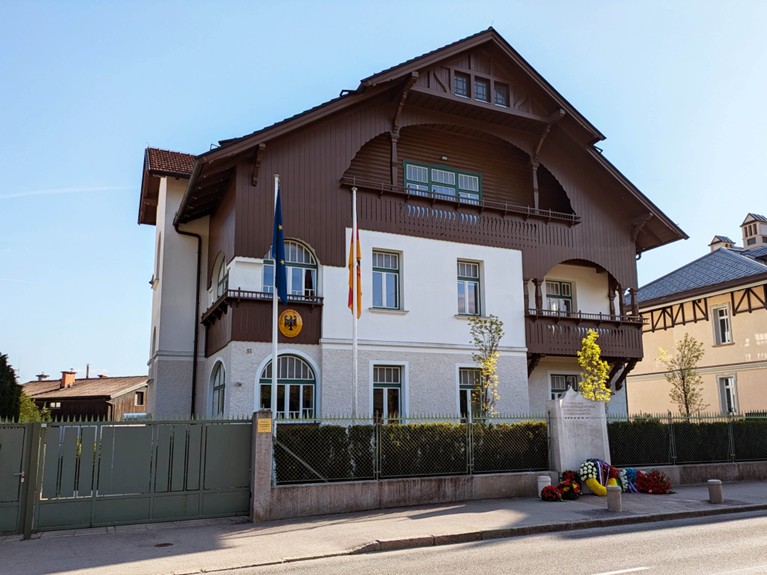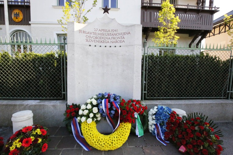 反帝国主義戦線結成の家。記念碑には「1941年4月27日、この家においてスロヴェニア民族解放戦線が設立された」と刻まれている。私がここを訪れたのは2025年のちょうど4月27日の夕方で、花が供えられたばかりだった。