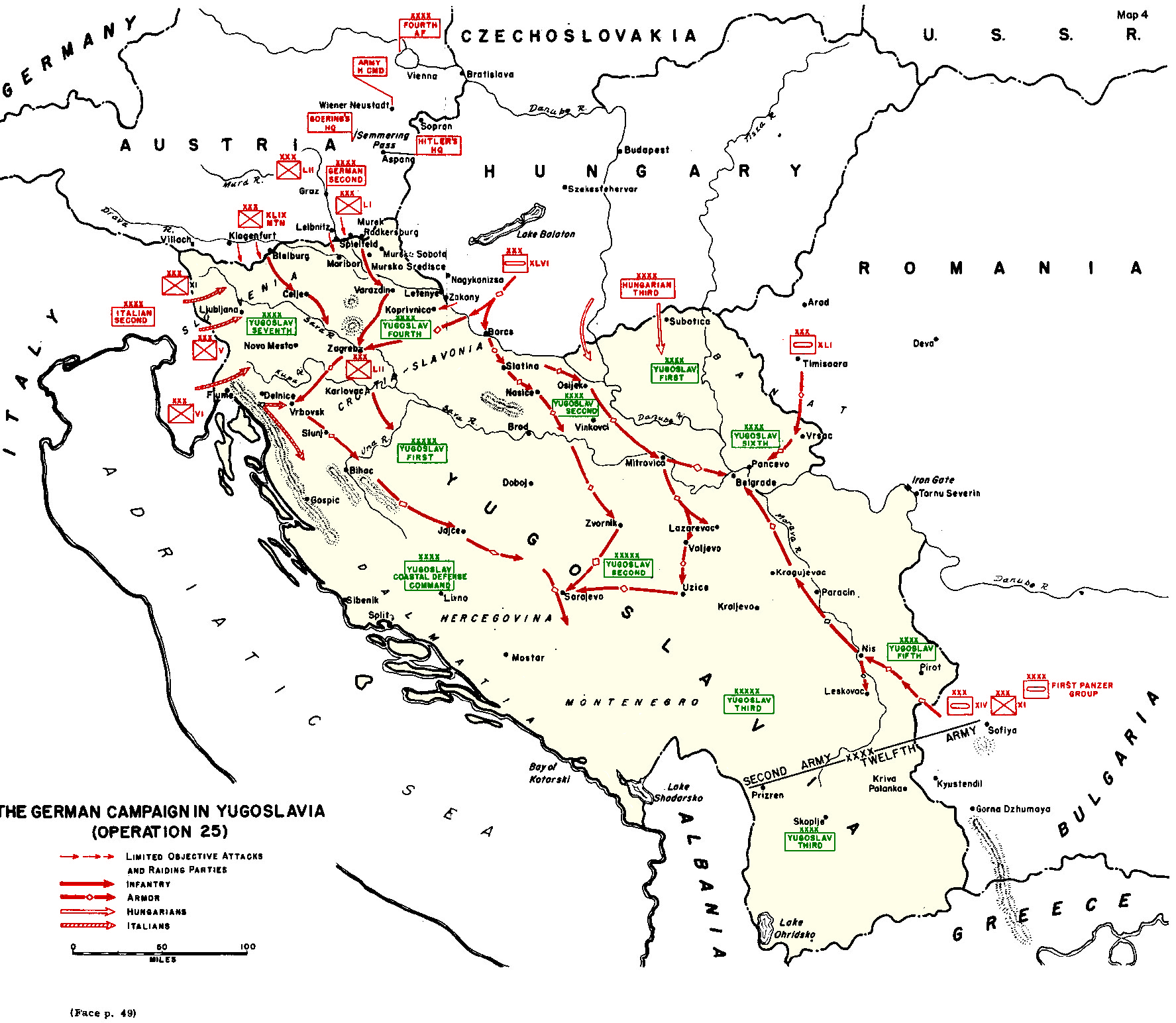 『ドイツ軍によるユーゴスラビア侵攻作戦図(1941年)』 © U.S. Army / Public Domain(1953年発行) / 教育目的使用