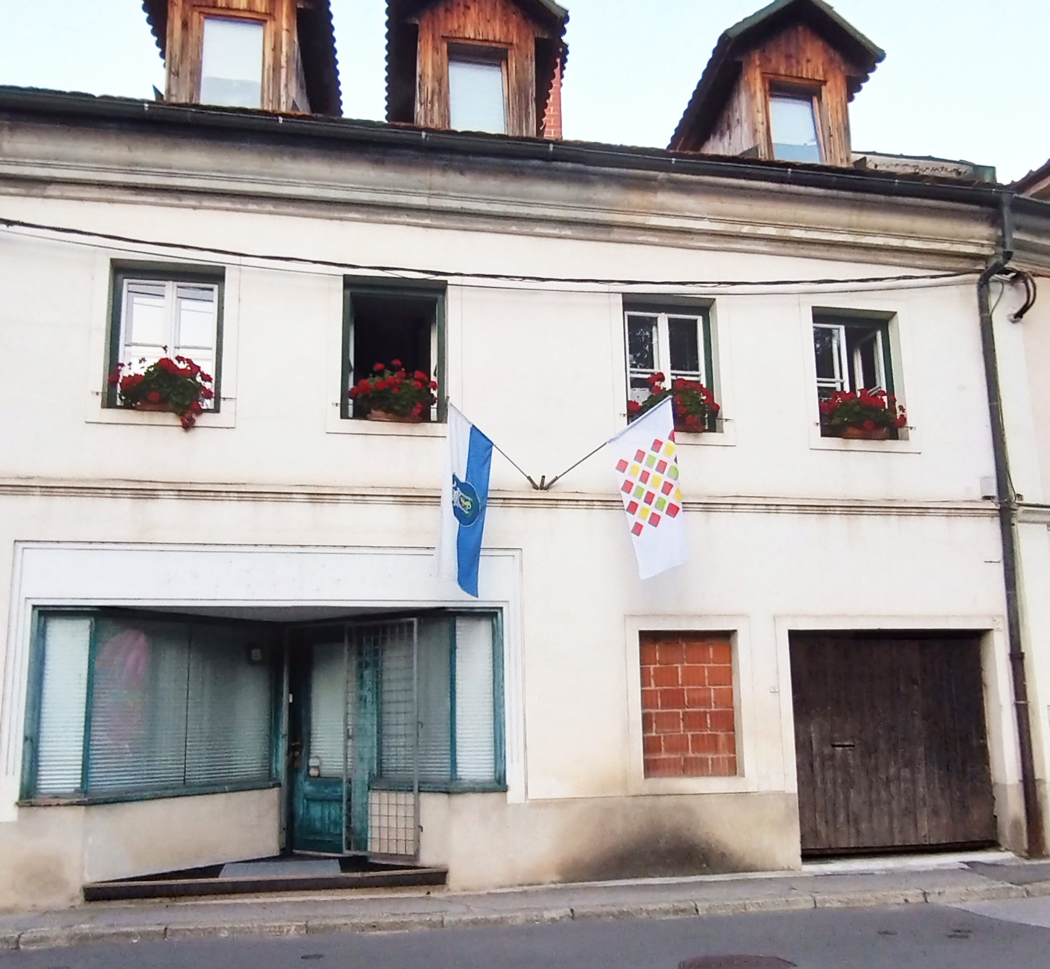 フェスティバルの様子の一端。右の2枚の旗は、左がカムニクの旗、右が今年のフェスティバルの旗。