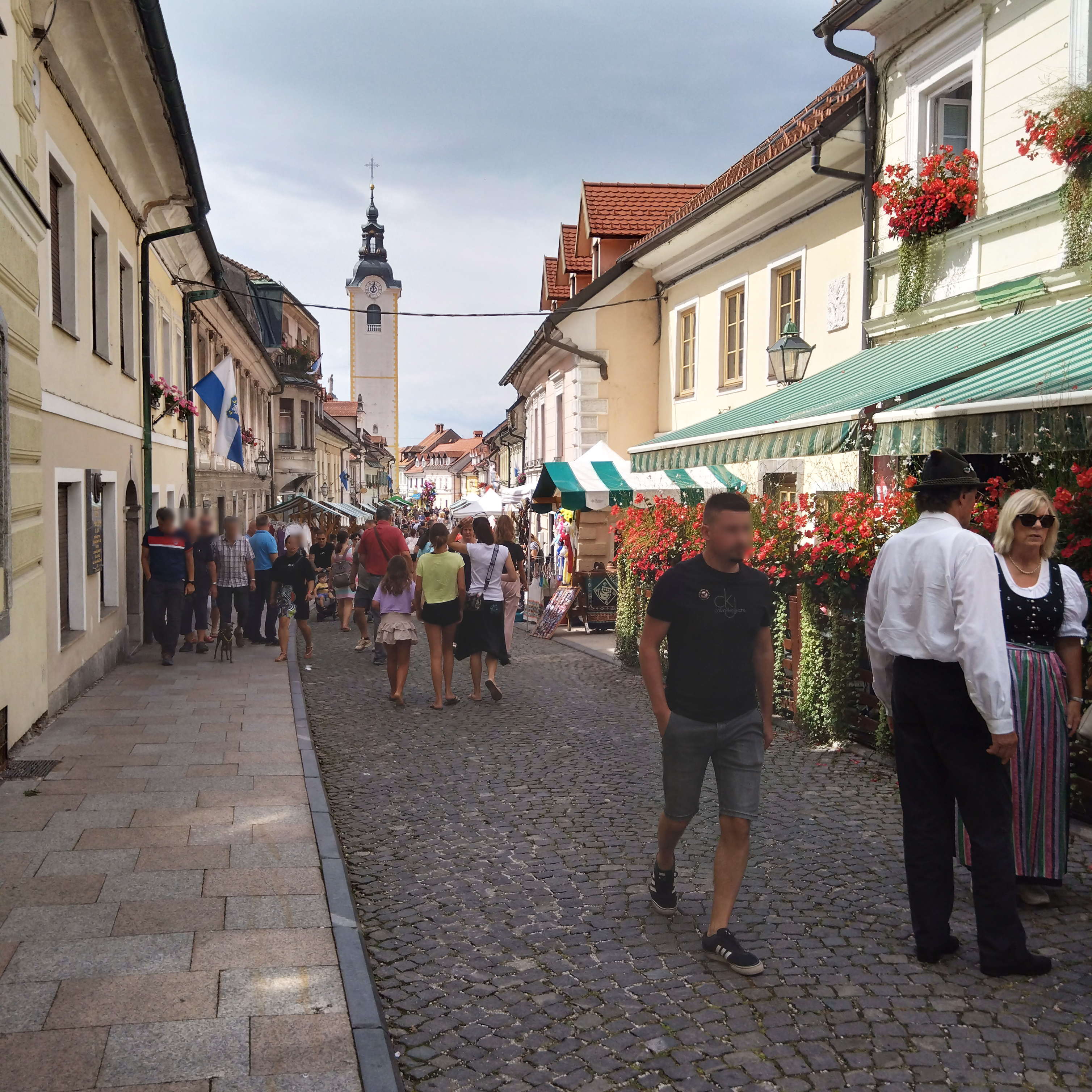 Kamnik(カムニク)は、首都リュブリャナから電車で約50分くらいの、人口14,000人弱の町である(サイト「Population of Kamnik on september 2024」より)。スロベニアの最古の町の一つで、交易で賑わったところであった。また、バイエルンのアンデス伯爵家という貴族の権力の中心地でもあった。1966年にカムニク市民が「民族衣装の日」を企画し、その後、「民族衣装と服飾遺産の日」と名称を変え、今は9月第2日曜日に、スロヴェニアの民族衣装を着た人々のパレードが行われる。その2日前の金曜からこのフェスティバルが始まり、地元の吹奏楽団などの演奏、フォーク歌手の歌唱、海外からのフォルクロアのグループも招いての民族舞踊なども行われている。2024年で第51回目を迎え、イタリアやスロバキア、北マケドニアからの民族舞踊団を招待していた。そして最終日の日曜、9月8日の午後3:00から、民族衣装で着飾った各グループや演奏しながらの楽団、バトンガールズの1時間ぐらいのパレードで盛り上がった。かなりの人々が見にやって来ていた。私はこれが目当てでKamnikに行ったのである。スロヴェニアの民族衣装はもちろん、先ほど列挙した各国の様々なものやそれ以上のものまで見られて大満足だった。日本では観光案内にもほとんど触れられてなく、取り上げたサイトも無いようなので、私がこのパレードとスロヴェニアの民族衣装を紹介するのは意味があることだと思った。ちなみに、https://visitkamnik.com/en/events/top-events/days-of-national-costumes-and-clothing-heritage という祭典全体の案内サイトがある。日曜午前中から街にくり出したが、中心のMedvedova通りには食べ物の出店などが出ていて、大勢の人々が集まり、また中央舞台も設えられ、各国の民族舞踊が演じられていた。パレードは、Samostanska通り-Medvedova通りという中心の通りを南から北へと進んだ。
