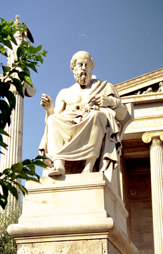 古代アテネの哲学者。信仰されていたデルフィのアポロの神託で「ソクラテスより知恵のある者はいない。」と言われたことを知り、その真偽をたしかめようと様々な人々と対話するが、皆「善悪」のことがわかっていなかった。そこで彼は「私は何が善かを知らないが、知らないということは知っている。他の人は自ら知らないことすらわかってない。私は知らないということを知っているという点で他の人より知恵があるということだろう。」と考えた。そして人々に無知をわからせ、真の善を考えるよう問答を進めた。しかし、裁判にかけられ、「国家を傾ける者」として死刑判決を受けた。結局、自ら毒杯を飲み、刑に服した。