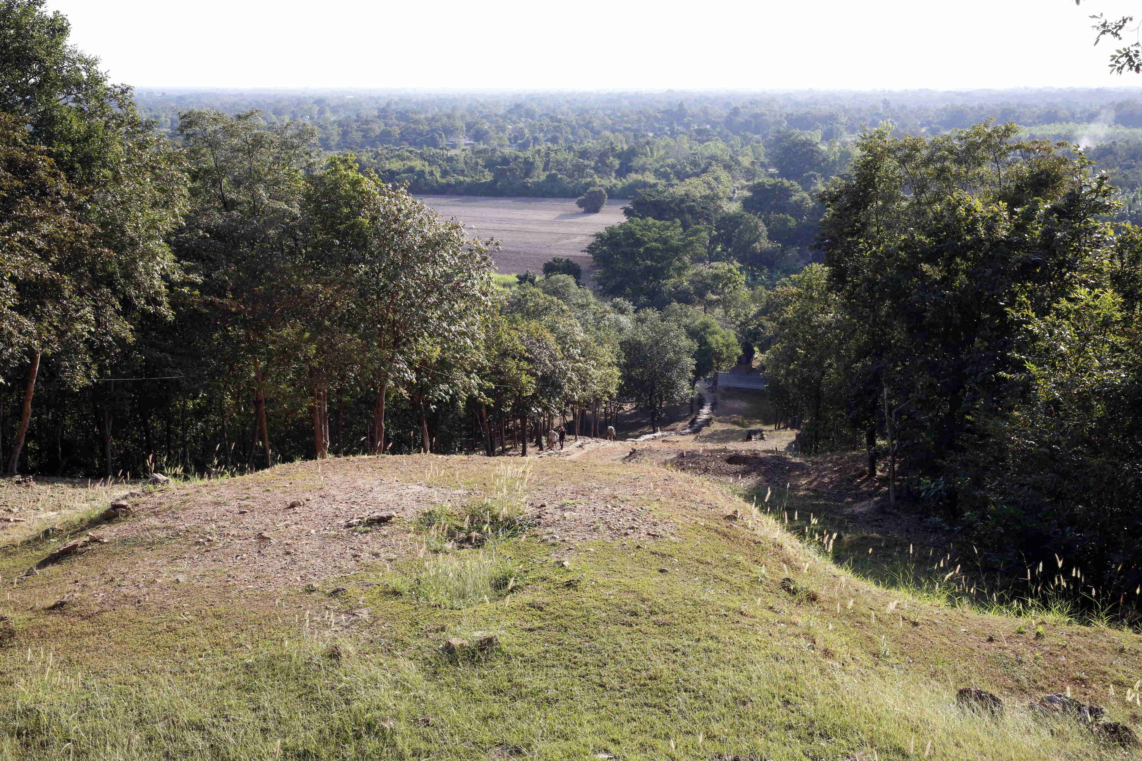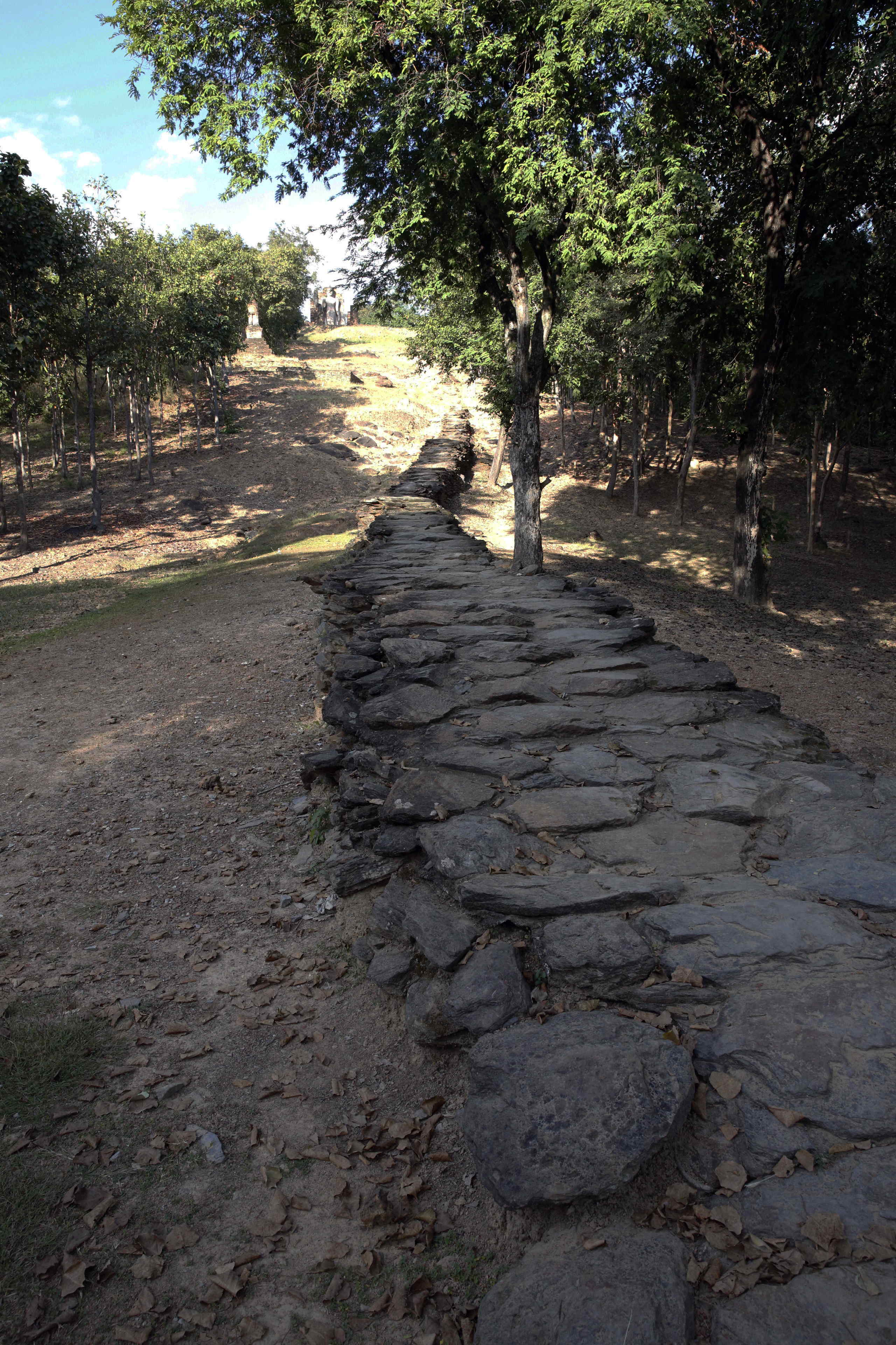 ワット・サパーン・ヒンはスコータイ都城外西2kmkの丘の上にある。お堂は無く野ざらしだが仏立像がお分かりになるだろうか? 敷石の登り道を行く。「このくらいなら」、と思って登ったが途中で息が切れてしまった。