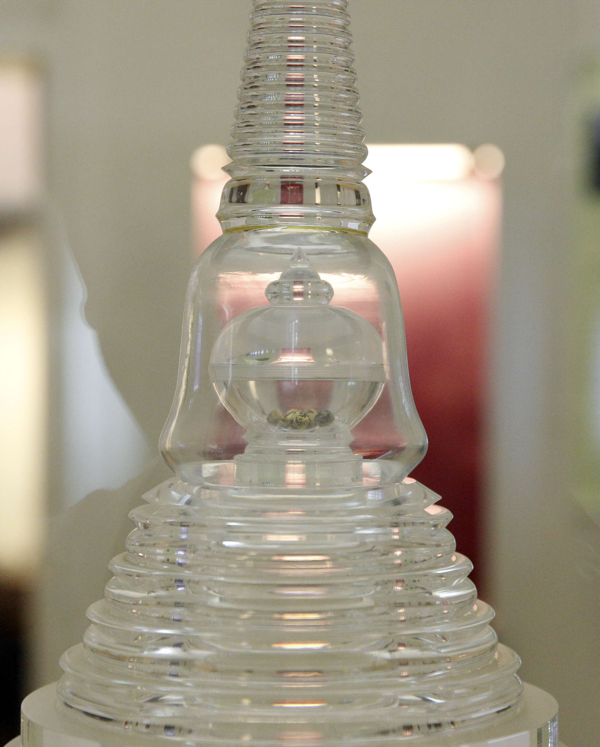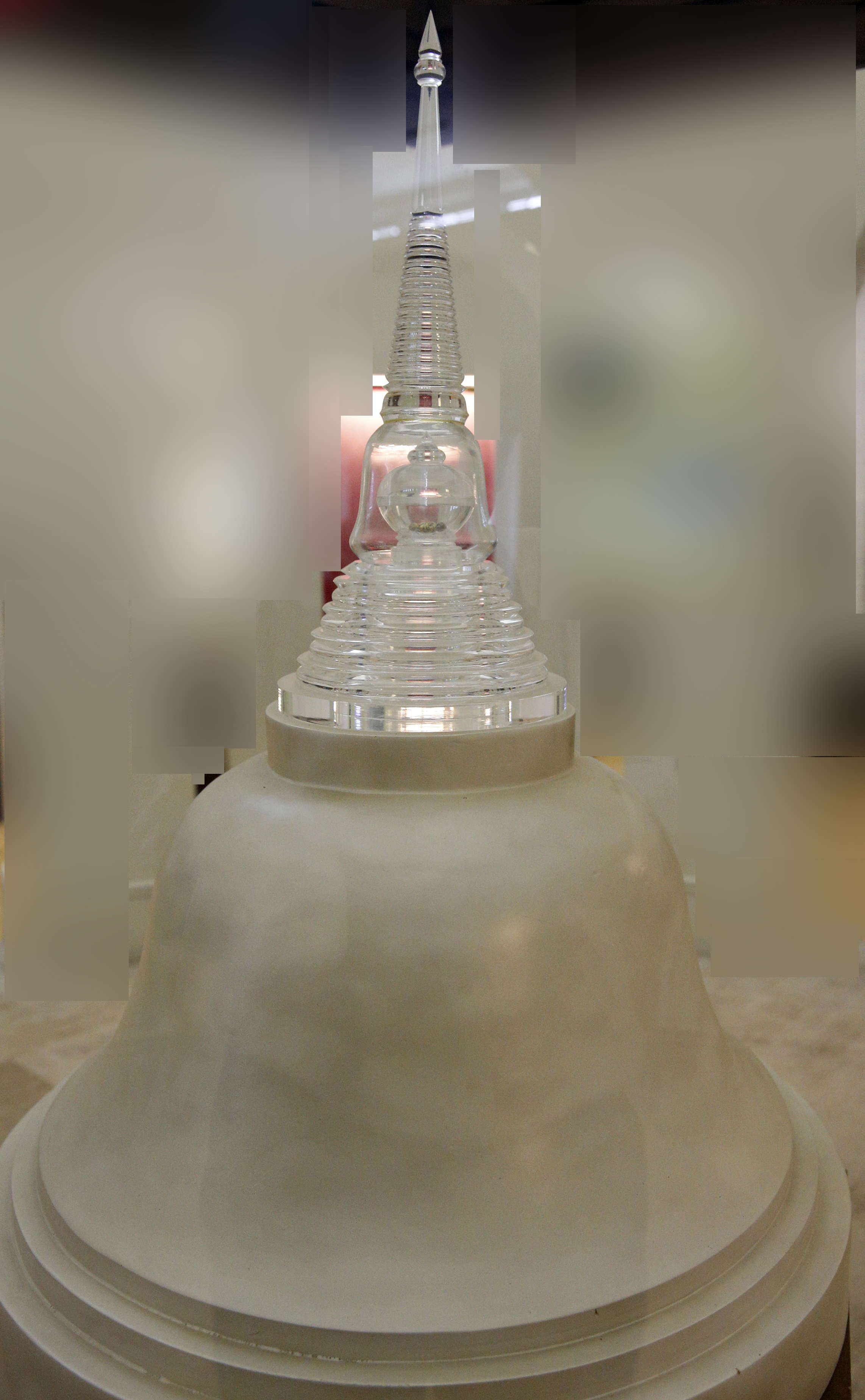 なお、塔の中のどこに仏舎利があるかについては、このスコータイにあるラームカムヘン国立博物館にレプリカによる説明展示がある。それによると次の通り。