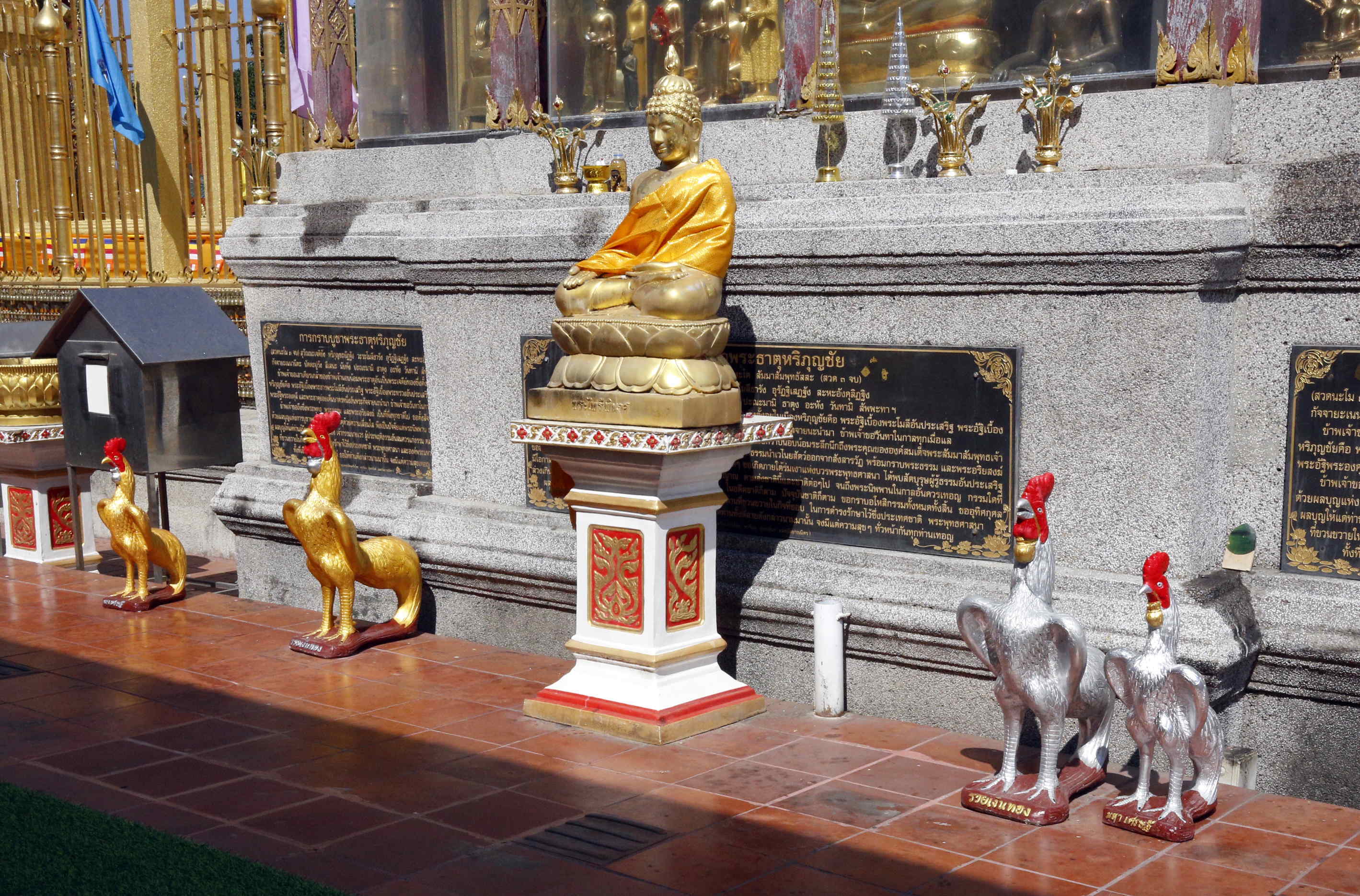 例えば、下の写真にあるようにこのランプーンのワット・プラ・タート・ハリプーンチャイは酉年生まれの人のための寺だということです。干支では羊は山羊、猪は豚、ところにより象となるとのこと。
