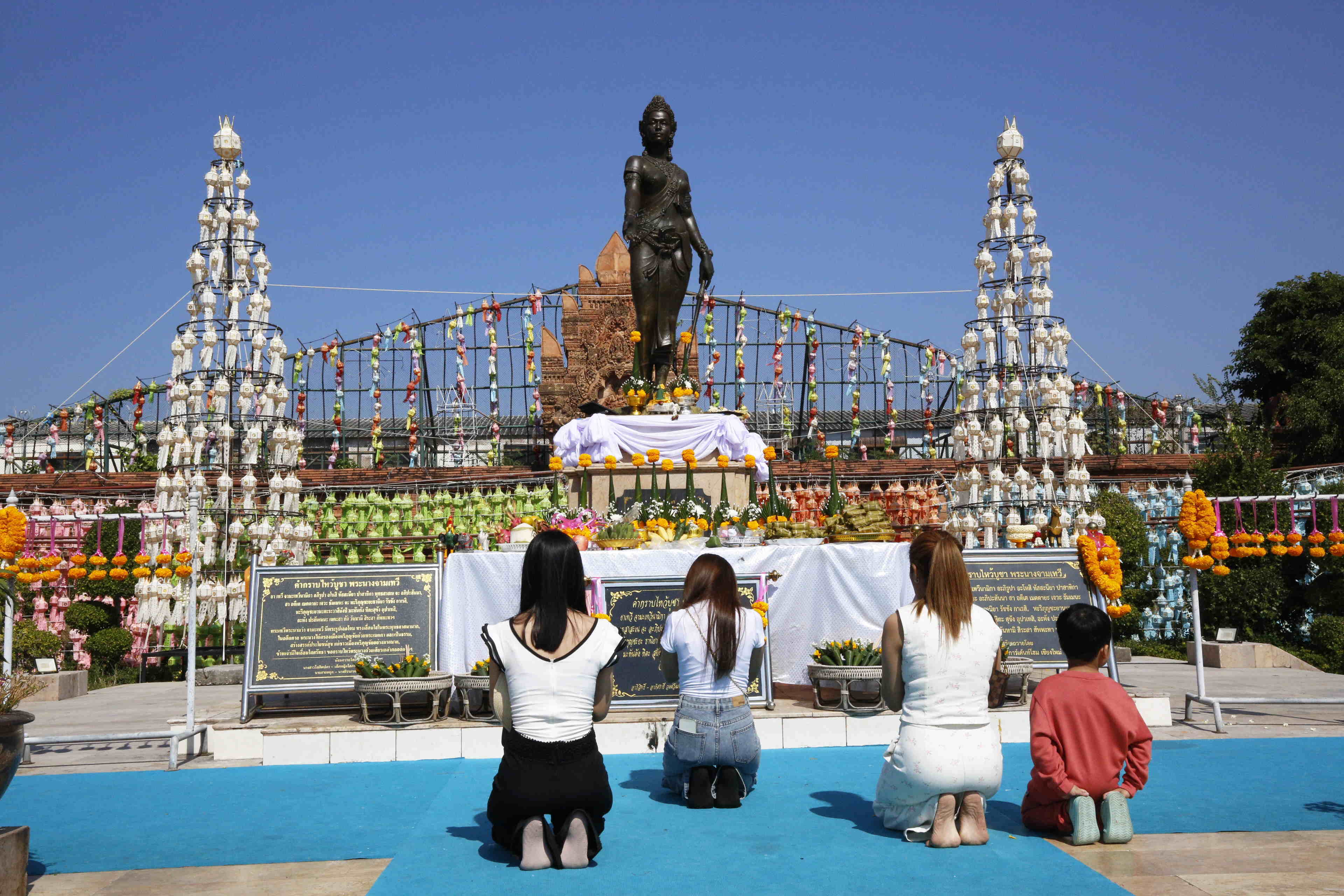 ランプーンの町にある、ここを首都としたハリプンチャイ王国をラヴォ王国から派遣されて建設したという、伝説の王女チャーマ・テーゥイ像の回りは色とりどりの灯籠でいっぱいでした。