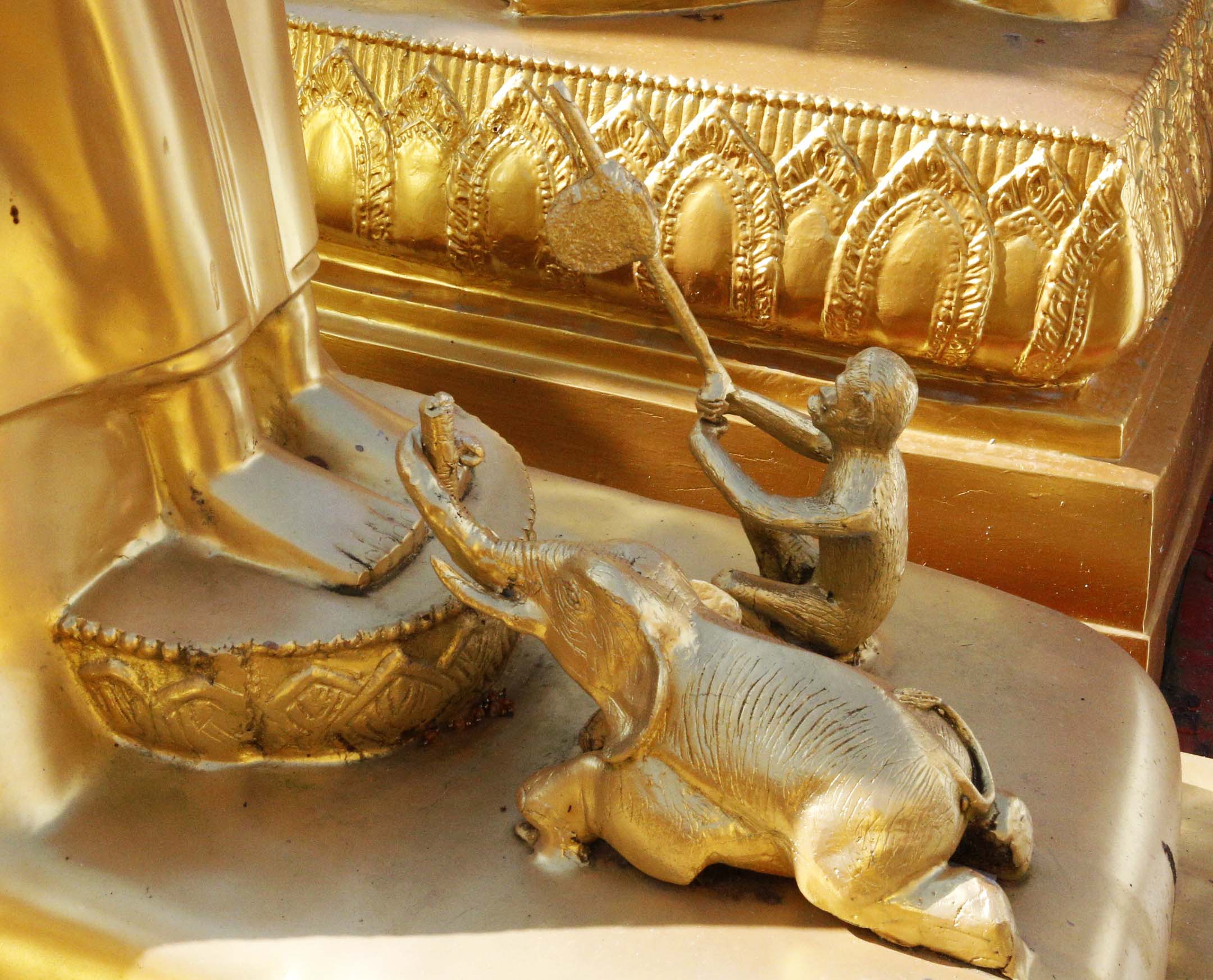 これは、ワット・プラ・タート・ドイ・ステープのもの。象はサトウキビを、猿は蜂の巣(蜂蜜)をブッダに捧げている