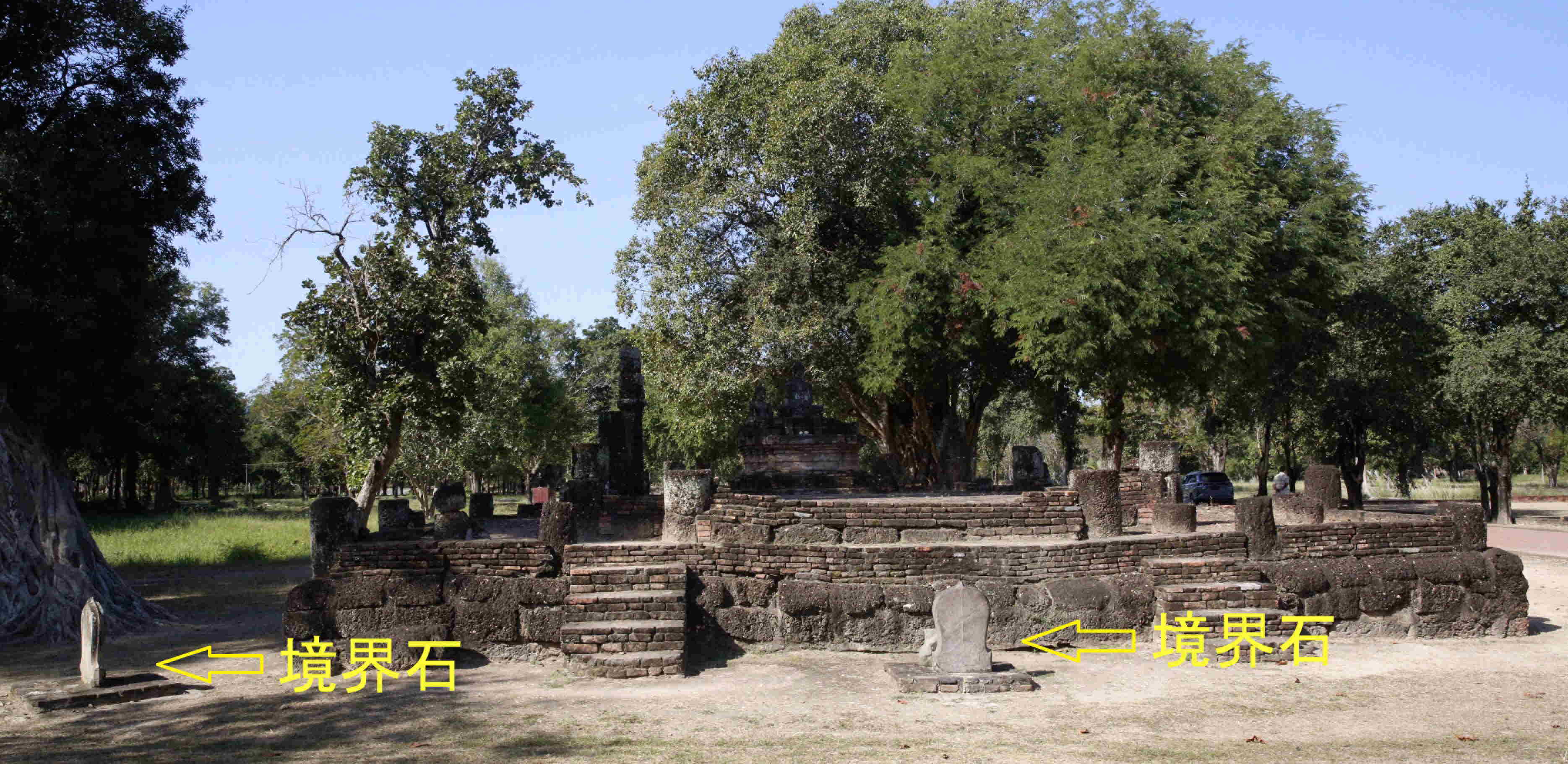 境界石はスコータイのワット・プラパーイ・ルアンにあった。下はシーサッチャナーライのワット・ナンプラヤーの塀。無くなったところはアユタヤ王朝に持ち去られたとのこと。今でもスコータイの人々には「アユタヤは強権的だった」と語り継がれているようです。