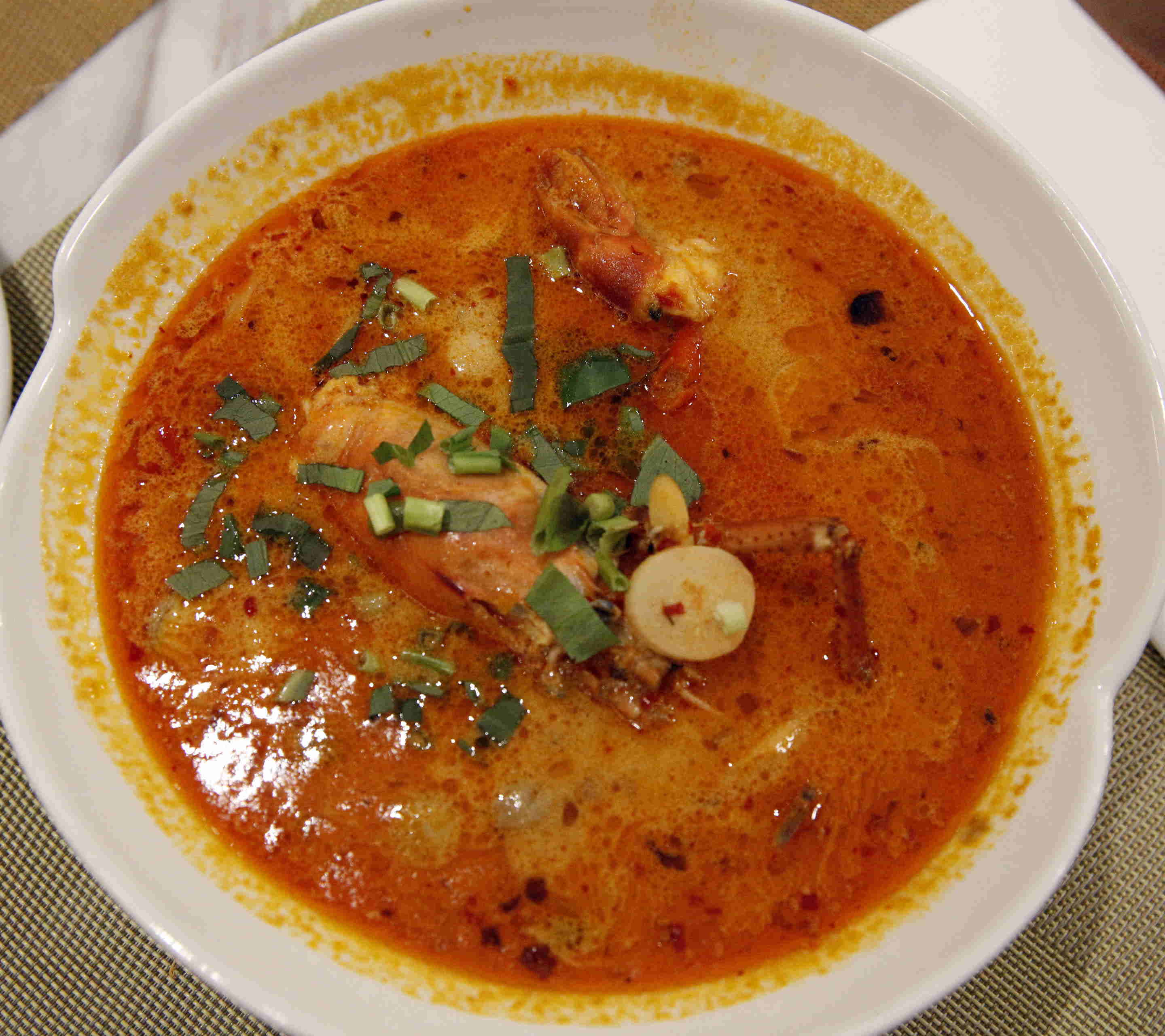 ナンプラーがダメな私が、タイのソウルの味を語るのはまことにおこがましいが、あえて言えば、動物の骨肉で取ったスープ、タイ式醤油、ナンプラーなどの魚醤、砂糖、酢(またはライムの汁)、唐辛子、ココナッツミルクを組み合わせたものを基本とし、スパイスやハーブを様々取り合わせたものと言えましょう。日本人の醤油、みそ、出汁などにあたるものです。