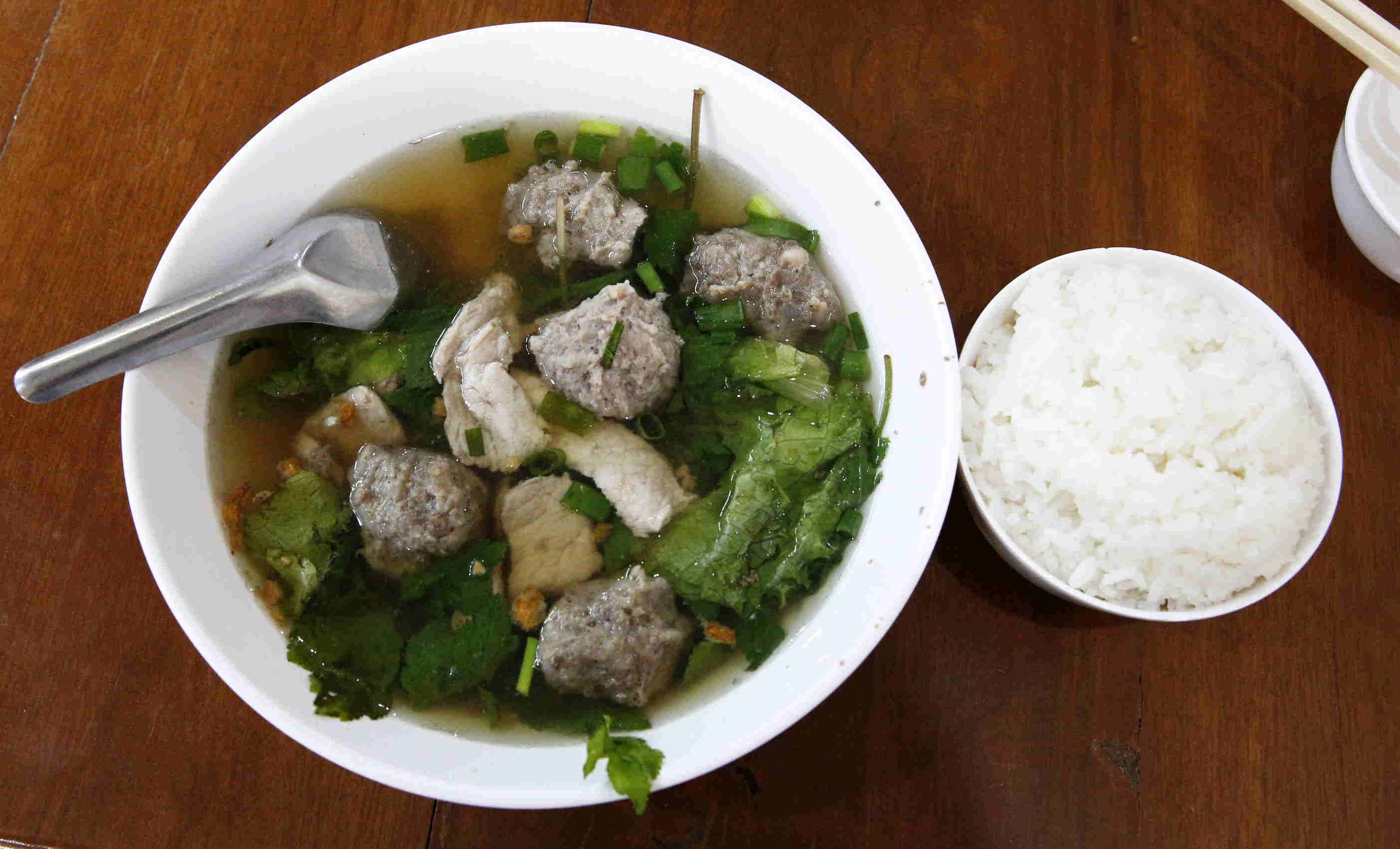 ポークの団子と野菜のスープでご飯を食べるもの。これもナンプラー臭なし。