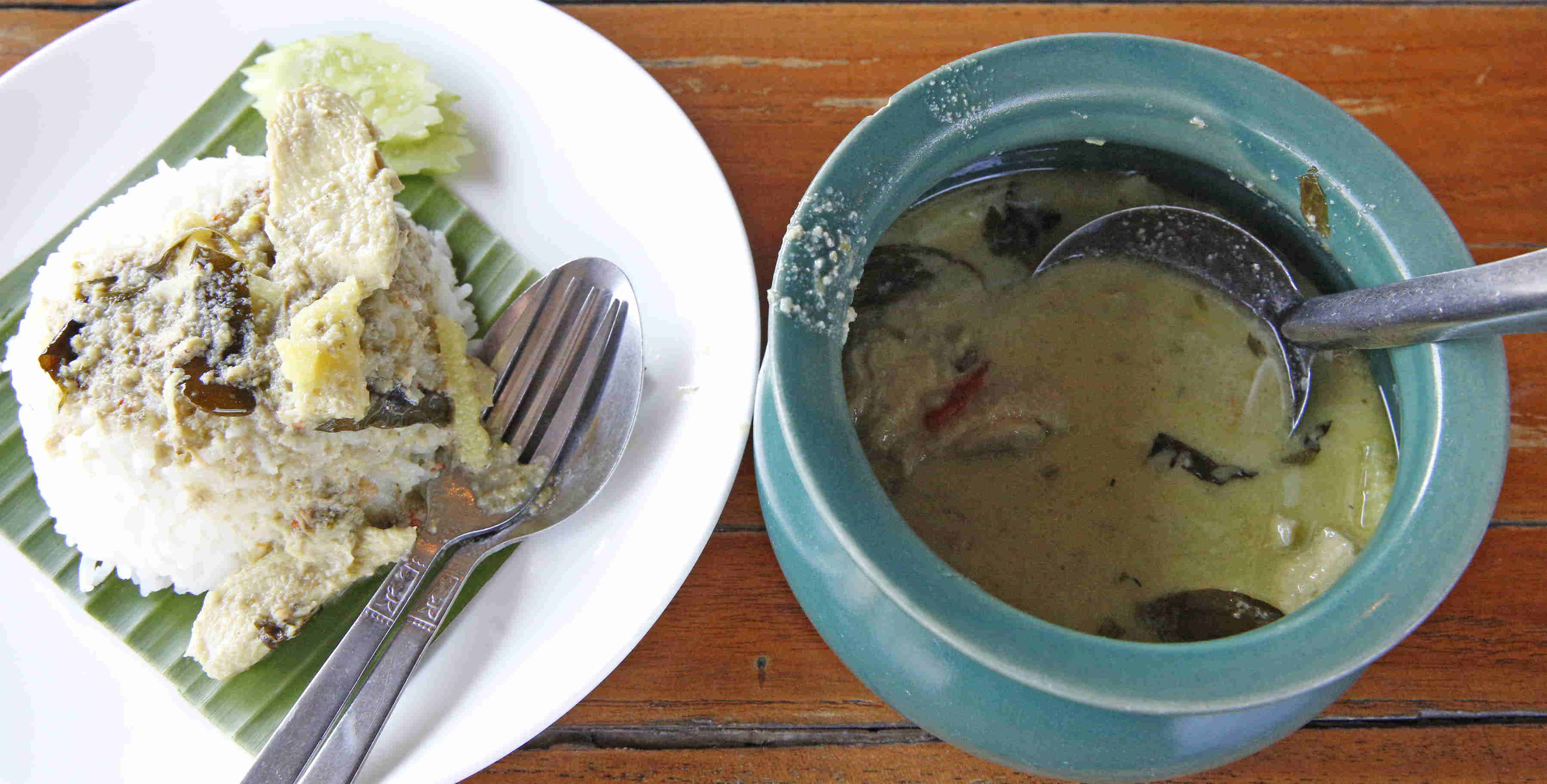 これも有名なグリーンカレー。街中とホテルレストランで2回食べた。青唐辛子で緑色となり、ココナツミルクが入ってまろやかであった。その他諸々スパイスやハーブが入っている。ナンプラー臭さは感じなかった。