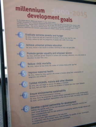 また、2000年から2015年までの「ミレニアム発展のゴール」という目標が示されていました。「飢餓から人口の半分が救われること」「全児童への初等教育の保障」「男女平等と女性の地位向上の促進」「5歳以下で死ぬ子供の減少」「エイズ、マラリアとの戦い」などです。