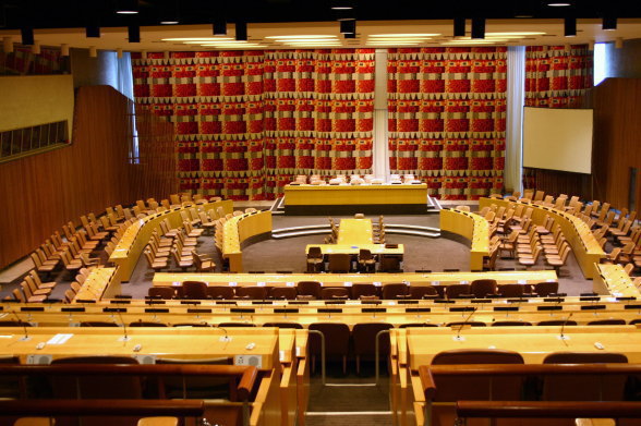 そして信託統治理事会へ。この部屋はデンマークからの寄贈です。ほとんどの植民地が独立したため、信託統治理事会はその活動を停止し、必要な場合のみ開会することになっています。