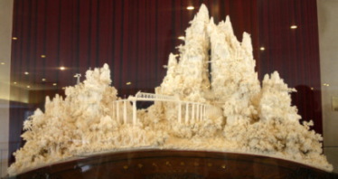 また、国連の代表権を獲得した中国政府から1974年に寄贈された象牙彫りがありました。2年がかりで8本の象牙を使って彫られたたいへん緻密なものです。