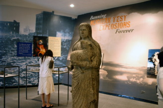 そして、広島、長崎の原爆被爆の簡単な展示がありました。寄贈された高熱で融けて曲がったガラス瓶、缶、天主堂の被爆した像などがありました。日本の世界平和における独自の課題提起をしていくべき責任を感じました。