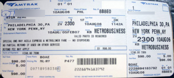 また、様々なところで「フォトID」(観光旅行者ならパスポートのこと)提示が要求されます。下のようにアムトラック(鉄道)のチケットを予約するだけでも駅で「フォトID」が要求されます。日本でJRやその他私鉄の予約に名前を登録されることなどはありませんね。また、USAはクレジットカードもよく使える社会のため、私は旅行中しょっちゅうパスポートやカードの所在を確認するという癖が付いてしまいました。