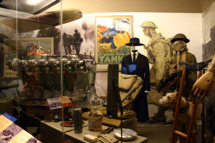 1914年からヨーロッパを舞台に始まった第一次世界大戦は、古い大国で世界を大きく支配していたイギリス、フランス、ロシアの三国協商に対し、急速に力をつけた勢力再編を望む新興国のドイツを中心とする三国同盟が挑戦した戦いであった。当初中立だったUSAはドイツの無制限潜水艦作戦もあり、「専制打破、民主主義擁護」の立場から三国協商側に立って参戦し勝利した。初めてのヨーロッパへの「介入」でもあった。戦争は長期化し、毒ガス、飛行機、戦車など新兵器も登場した。国立アメリカ史博物館の展示は少なかった。