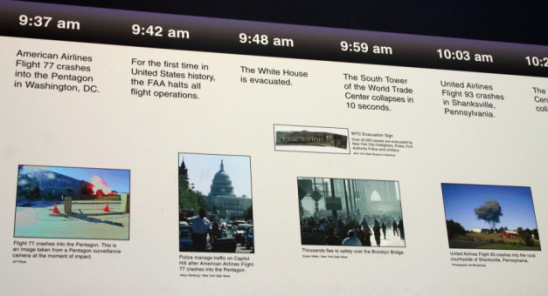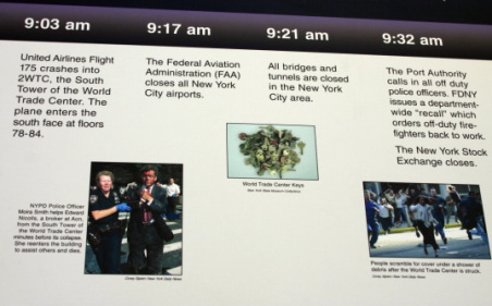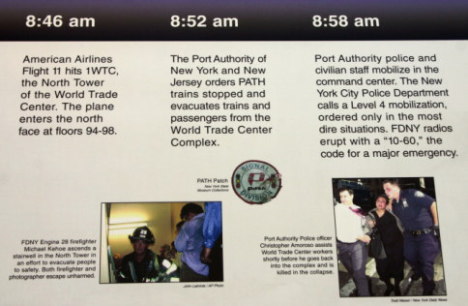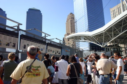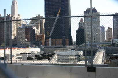 テロに遭った貿易センタービルの跡地は「グラウンド・ゼロ」と呼ばれるようになり、現在新たなビルを建築中である。金網で仕切られ、内部に入ることはできない。また、その金網の東側には、テロの経過を詳しく説明したパネルが掛けられている。多くの人々がここを訪れていた。