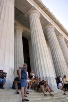 なお、ワシントンD.C.には、有名なリンカーン記念堂があり、そこには巨大なリンカーン像と壁に刻まれたリンカーンズアドレスなどがある。多くの人が集まっていた。